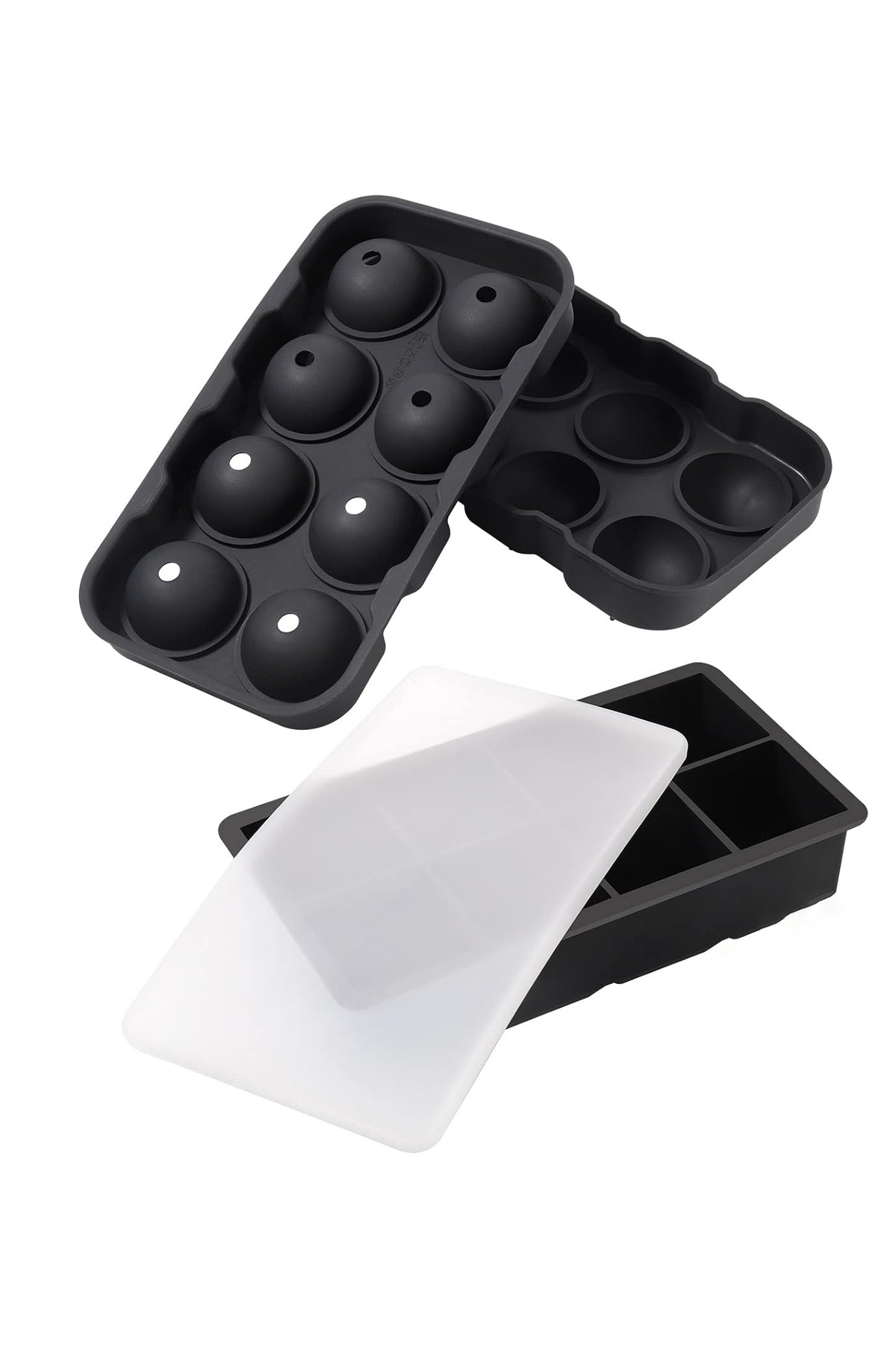 zola Set of 2 ice molds with lid, round and square, silicone, 6 cubes each, different sizes features