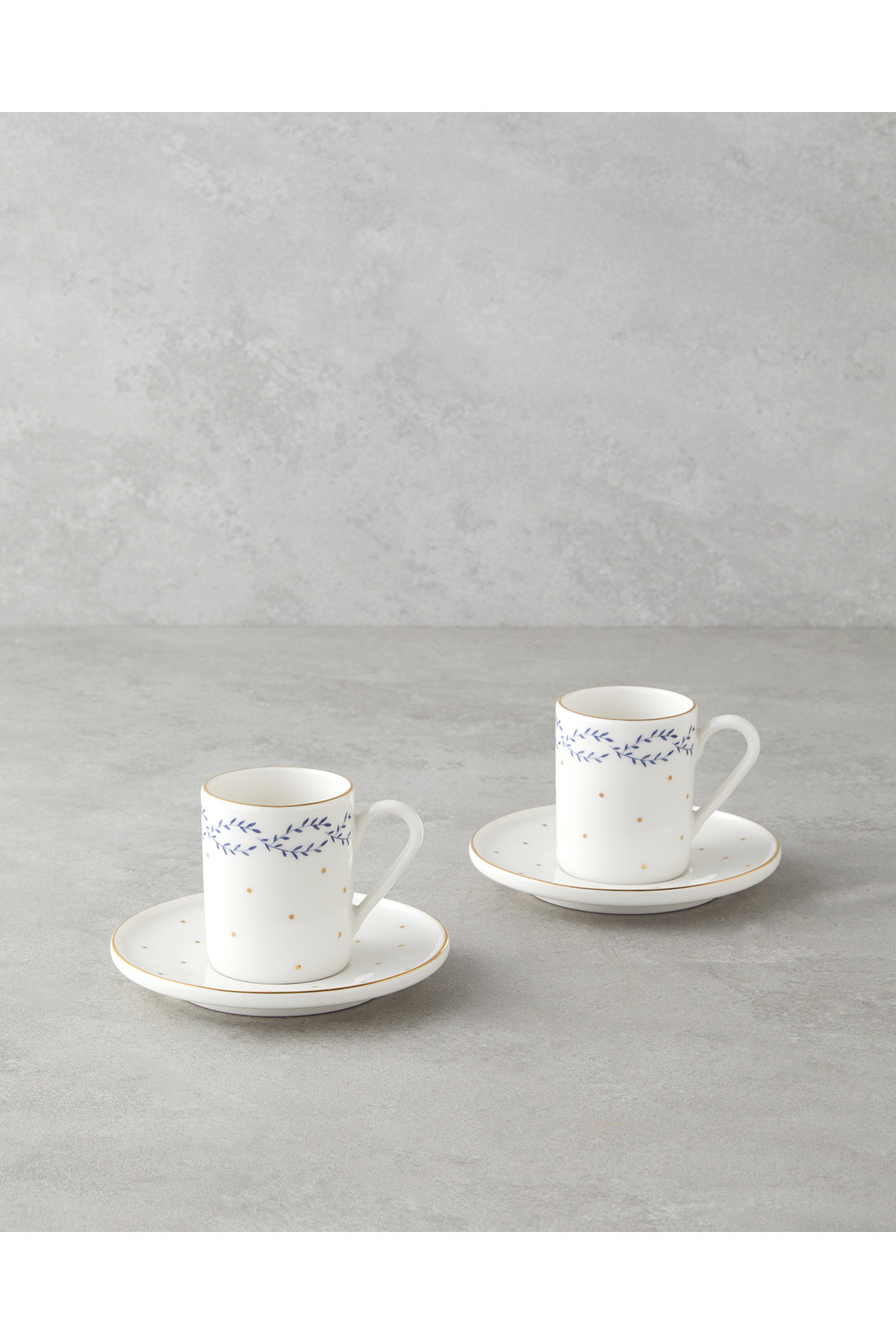 English Home Blossia Bone Porselen 4 Parça 2 Kişilik Kahve Fincan Takımı 90 ml Mavi Gold