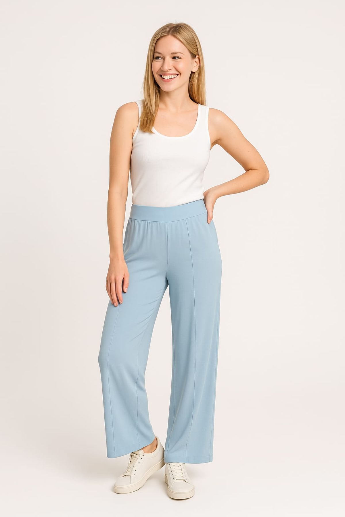 enmodaiçgiyim Premium Kumaş Yüksek Bel Pamuklu Esnek Önü Çımalı Geniş Paça Kadın Pantolon - Bebe Mavi
