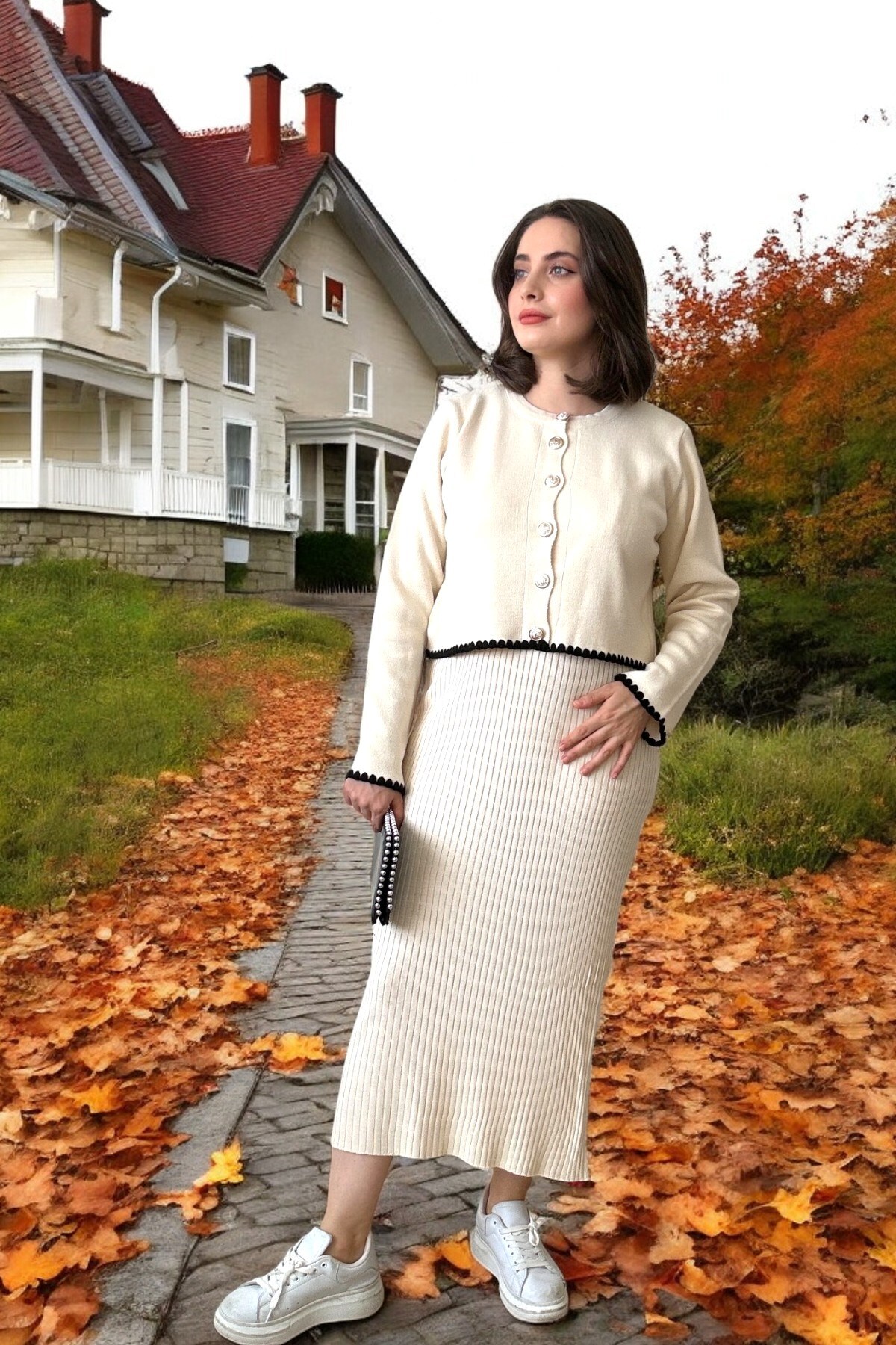 Entropy E0077 Ceketli Elbiseli Triko Takım - Krem