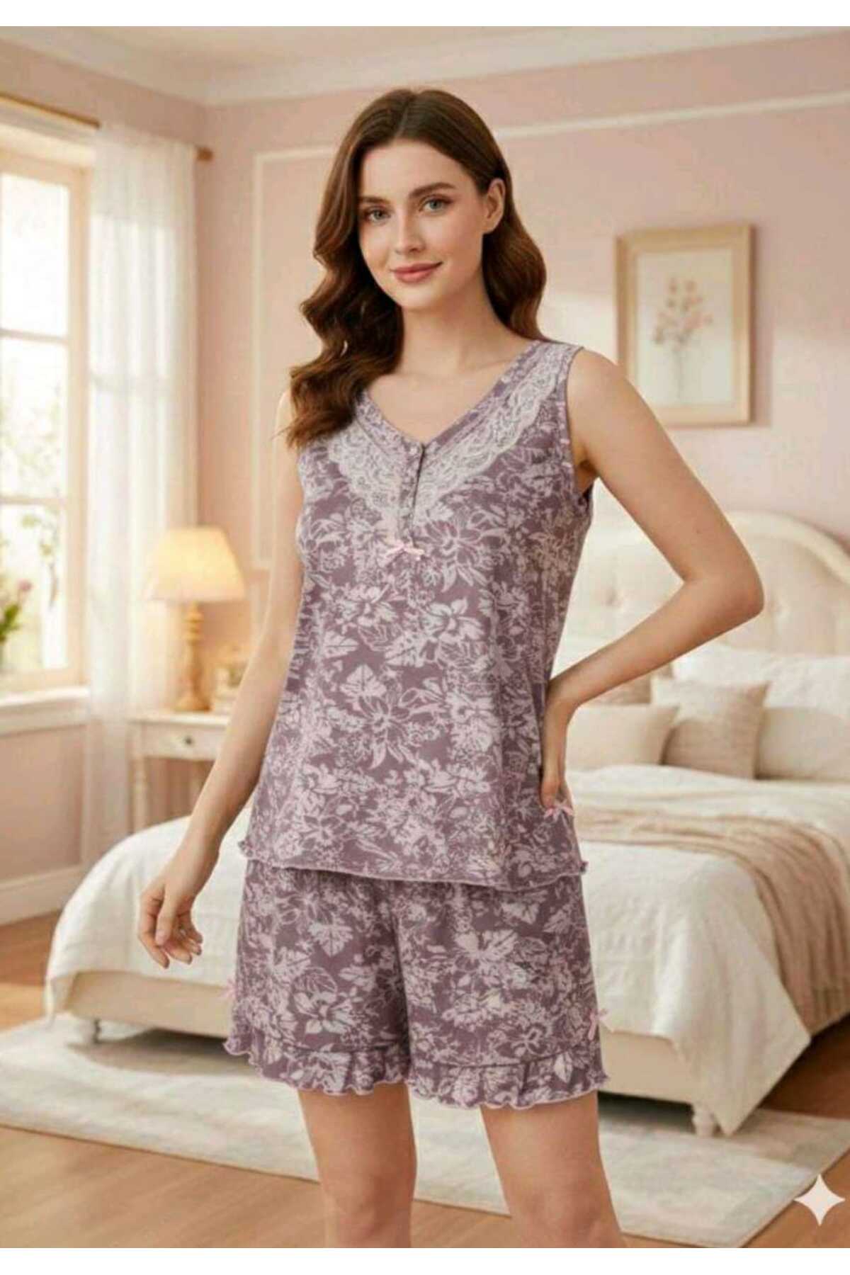 Erse ASKILI DANTELLİ BAMBU ŞORT TAKIM 666 Özellikleri