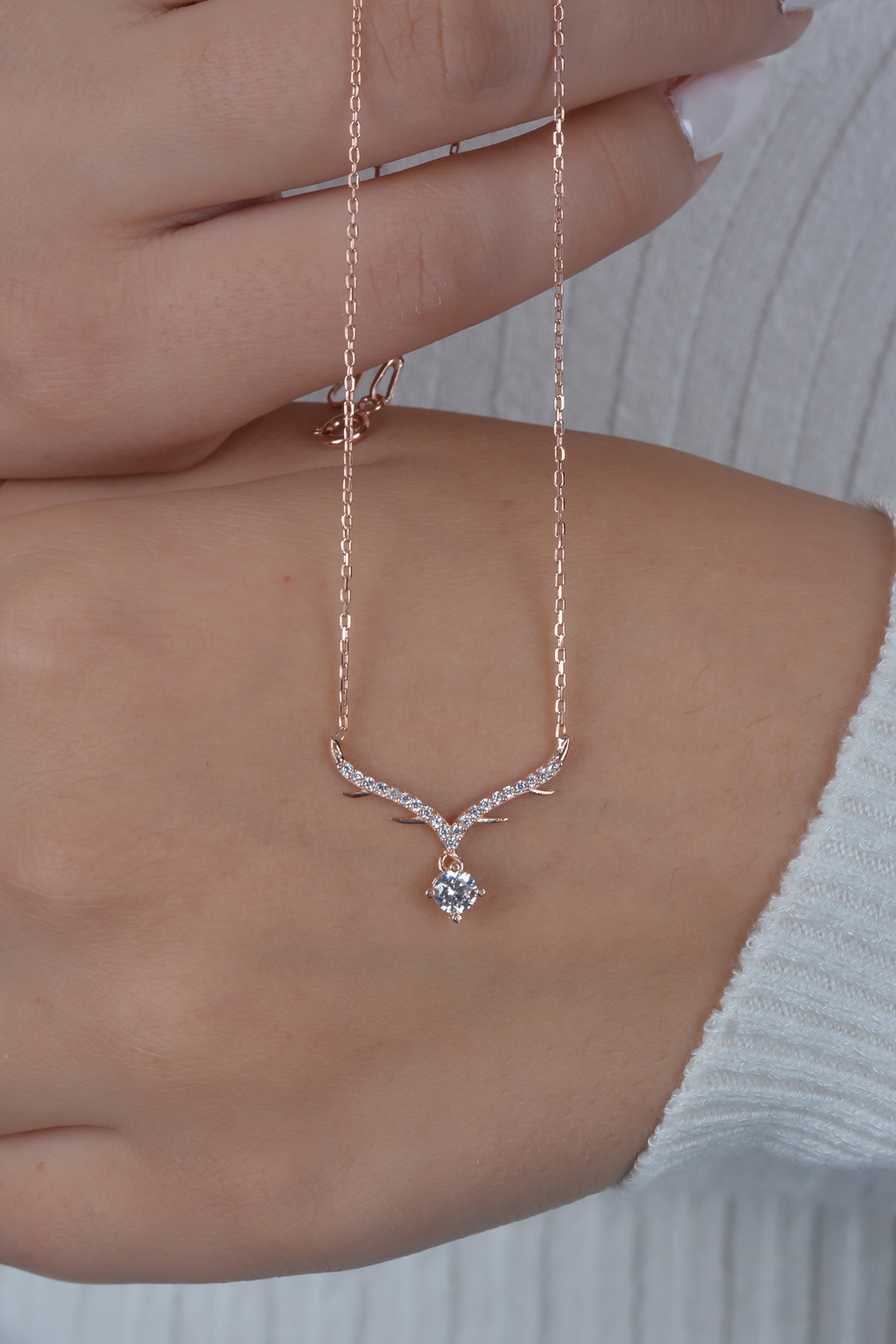 ESSARE 925 Ayar Dikenli Tek Taş Tasarım Kadın Gümüş Kolye