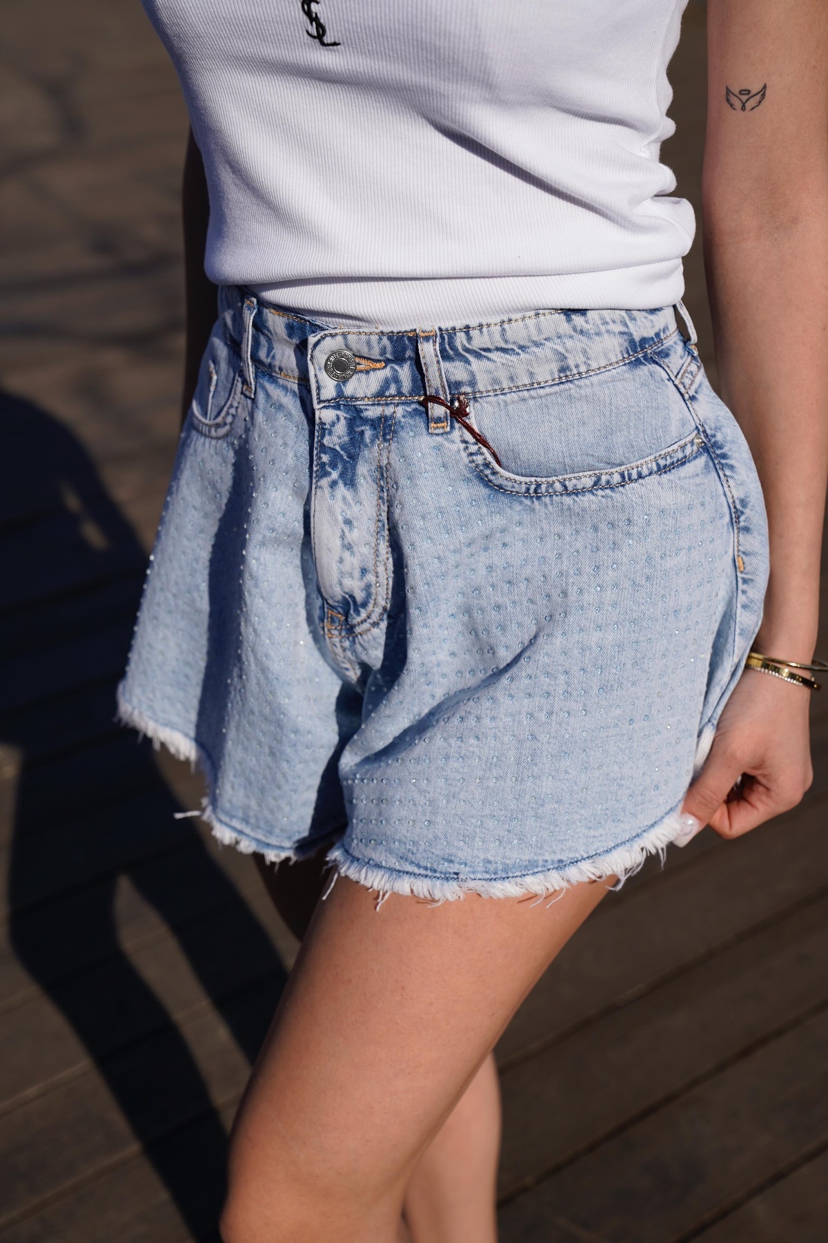 ESY BUTİK Taşlı Etek görünümlü kot şort