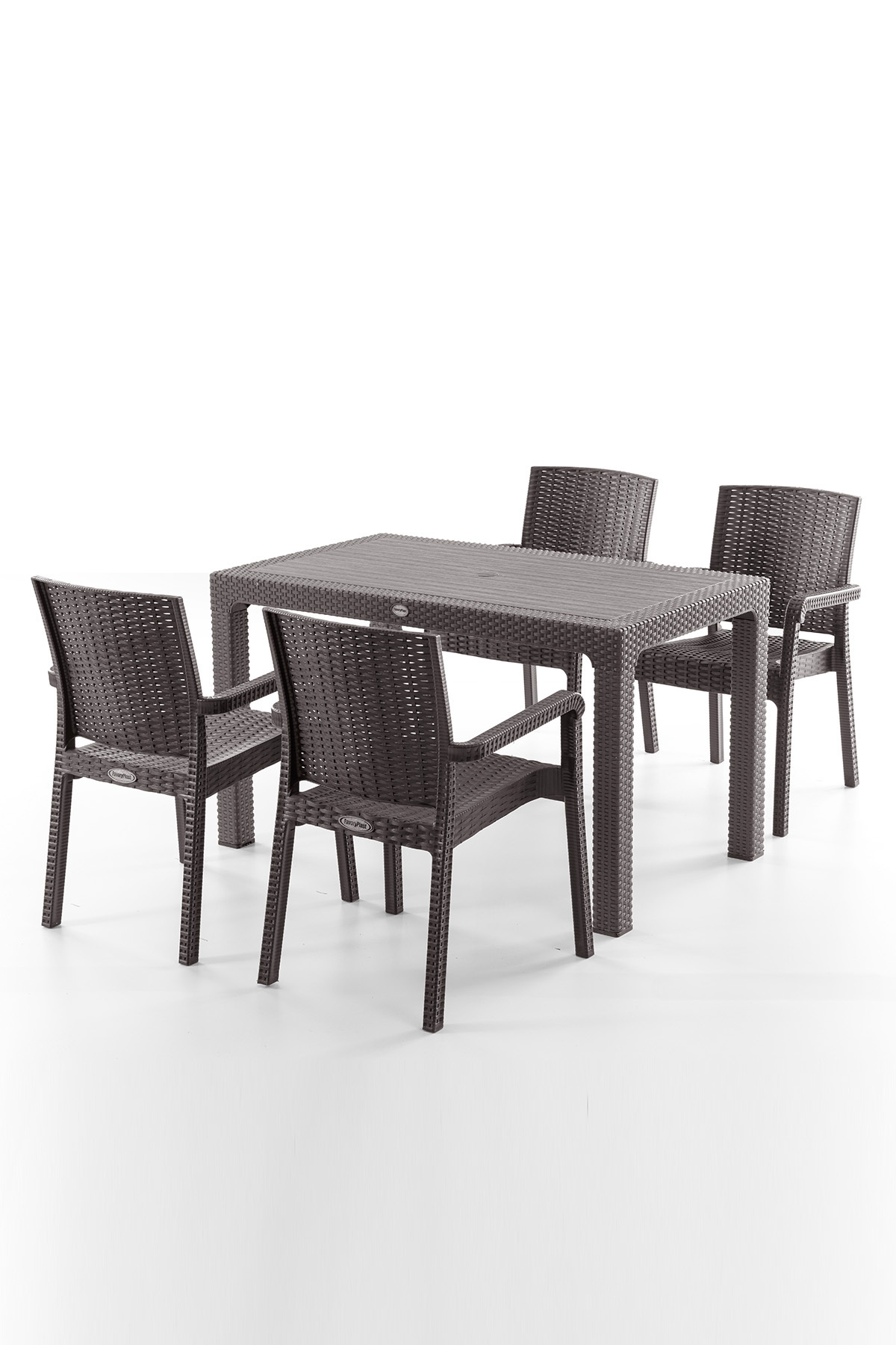 Evdemo King 4 Kişilik Rattan Masa Sandalye Takımı Kahve