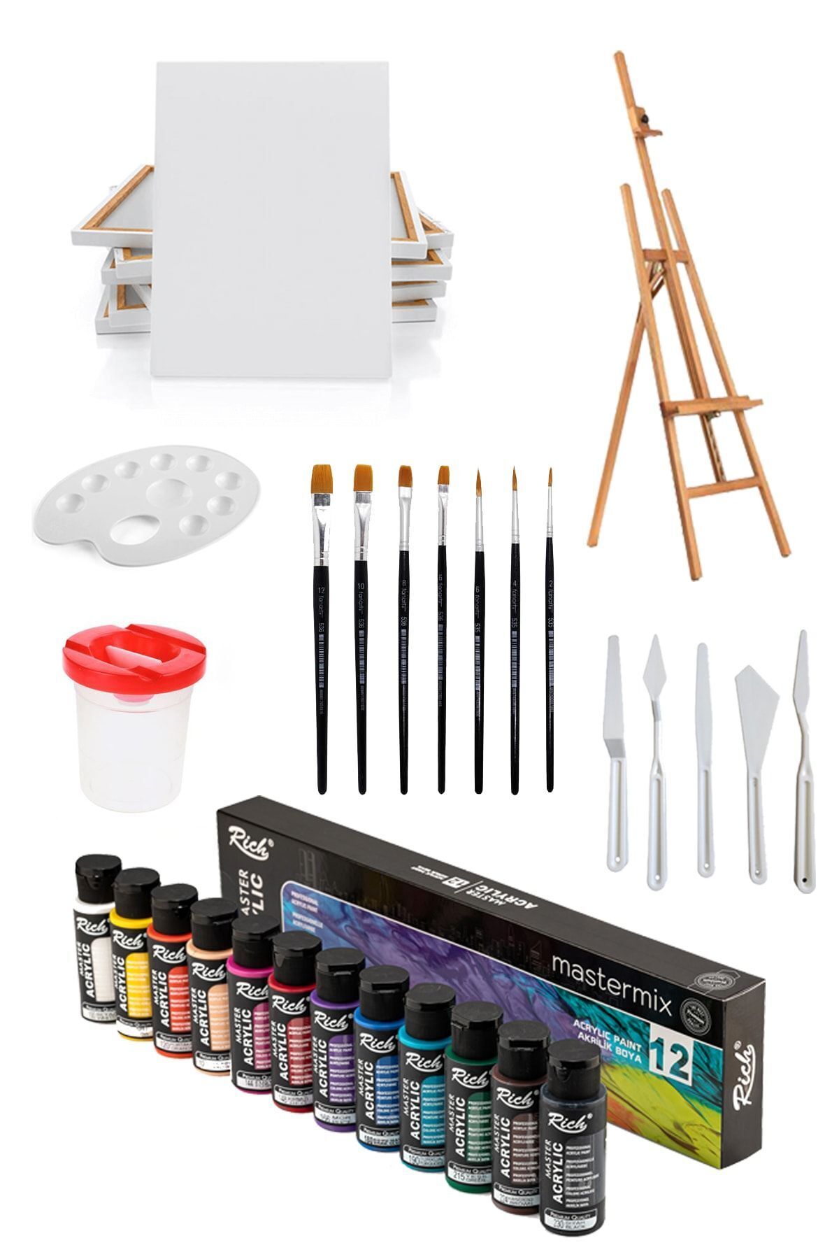 everart Akrilik Boya Seti 12 Renk -şövalye-tuval Fırça Seti -spatula-