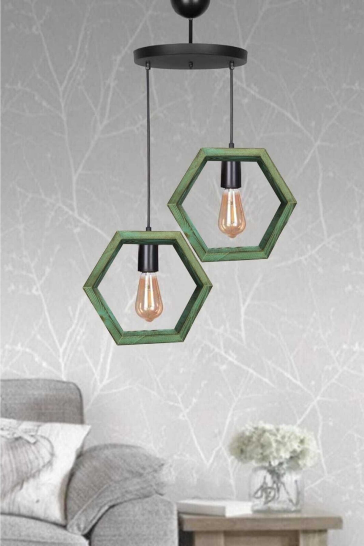 Evimdesign Yeşil Boyalı Ahşap 2 Li Sedef Avize