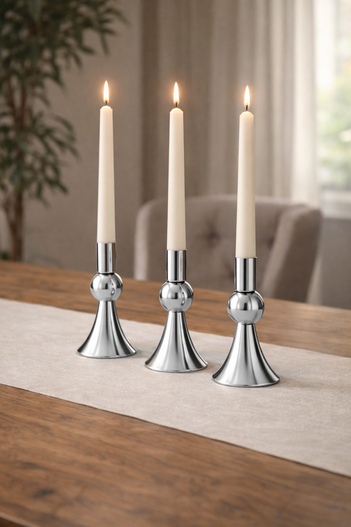 EvLight 3’Lü Mini Krom Şamdan Mumluk Özellikleri