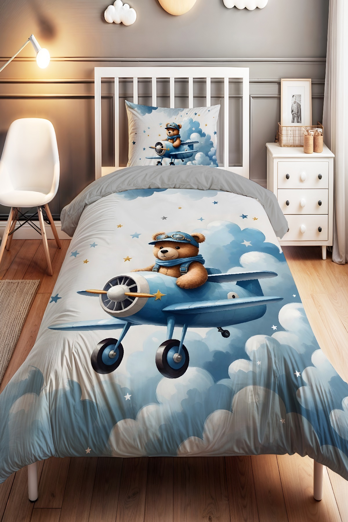EVPANYA Mavi Uçaklı Ayıcık Desenli Tek Kişilik Bebek Çocuk Nevresim Seti Özellikleri