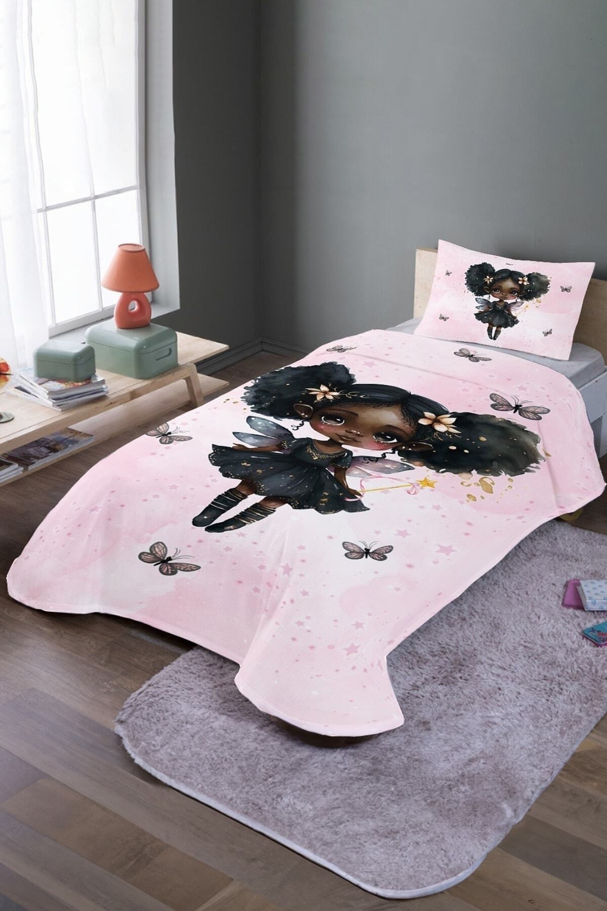 Evpanya Pembe Çikolata Kız Desenli Tek Kişilik Pike Takımı Ve Yatak Örtüsü