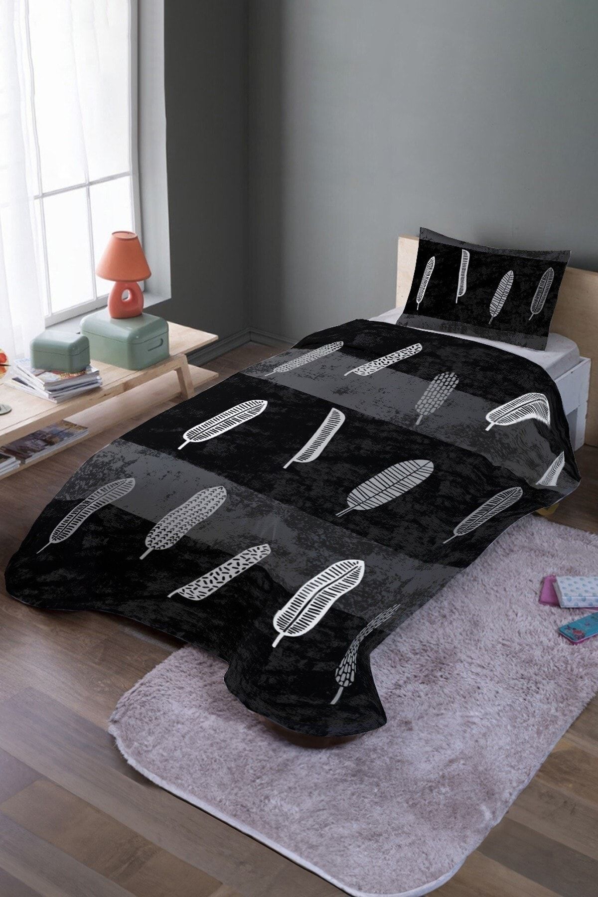 EVPANYA Siyah Yapraklar Desenli Tek Kişilik Yatak Örtüsü Ve Pike Takımı Özellikleri