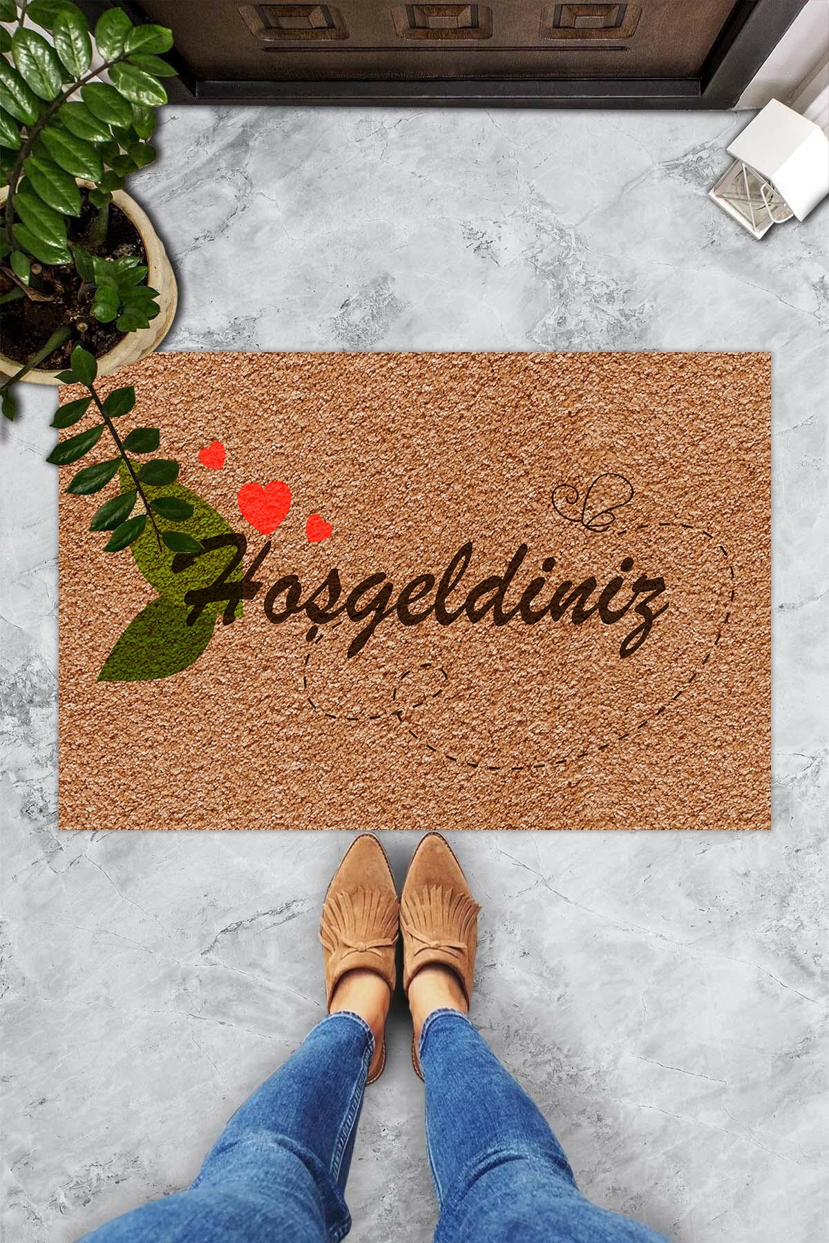 Evsebu Hoş Geldiniz Üçlü Kırmızı Kalp Dekoratif Kapı Önü Paspası Özellikleri