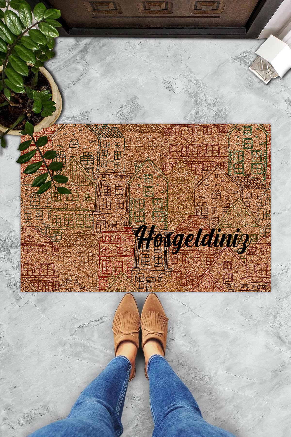 Evsebu Renkli Evler Hoş Geldiniz Dekoratif Kapı Önü Paspası Özellikleri