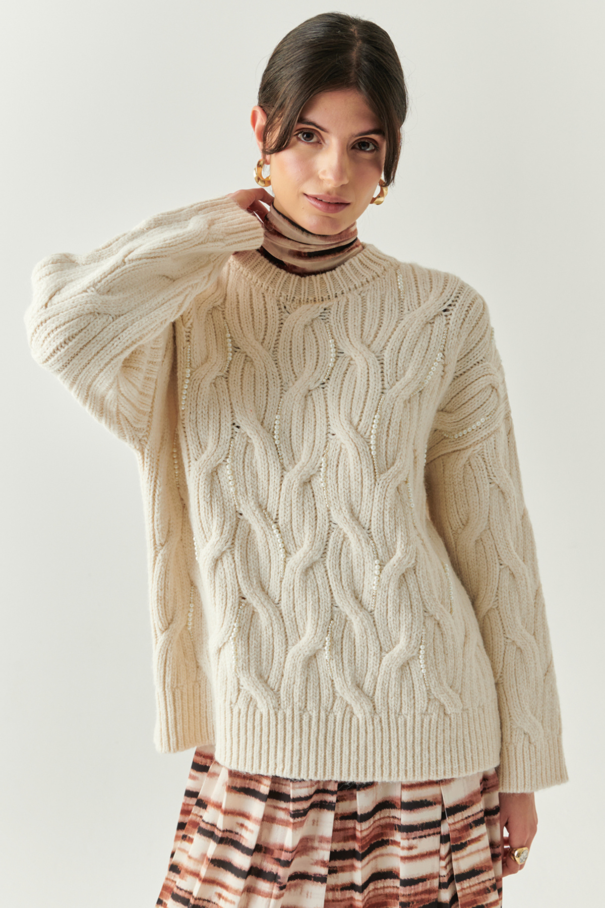 Exquise Boncuk İşlemeli Bisiklet Yaka Regular Triko Bluz Özellikleri