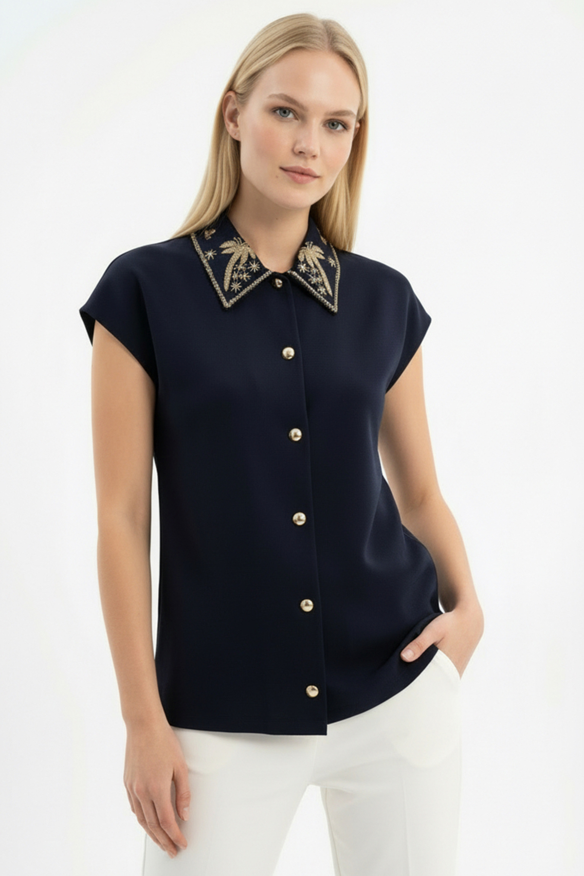 Exquise Gömlek Yaka İşlemeli Kolsuz Regular Örme Tişört Özellikleri