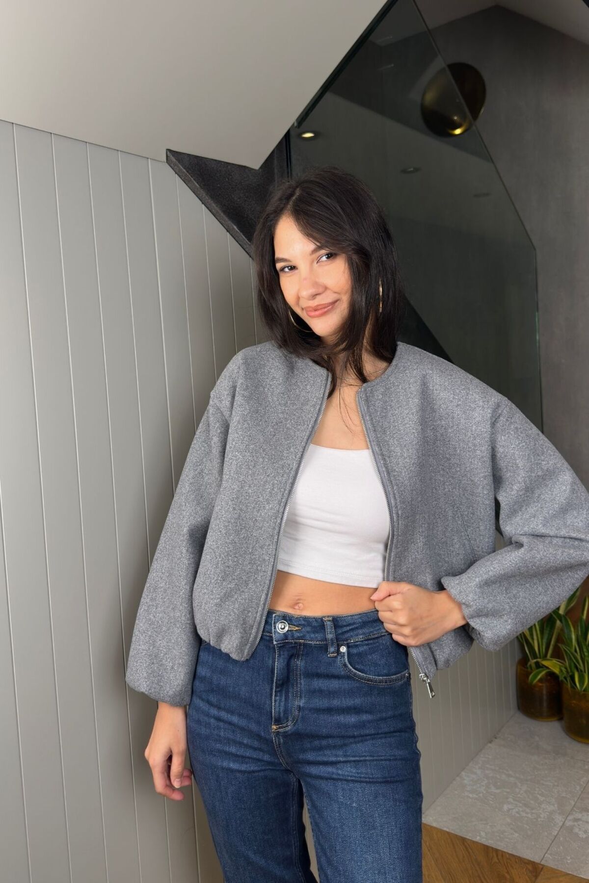 FABB Gri Bomber Kaşe Ceket