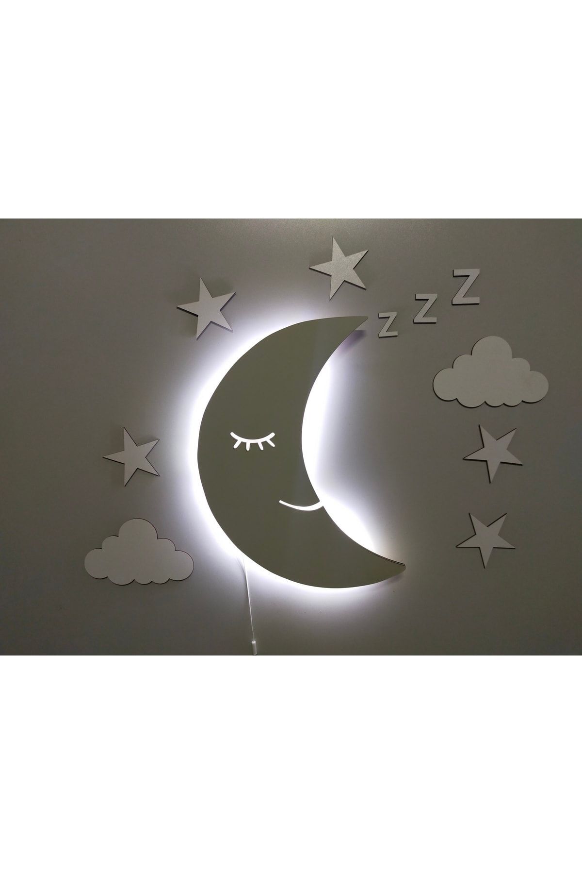 fabrikahşap Dekoratif Uykucu Aydede Gece Lambası Ledli Aydınlatma Aplik