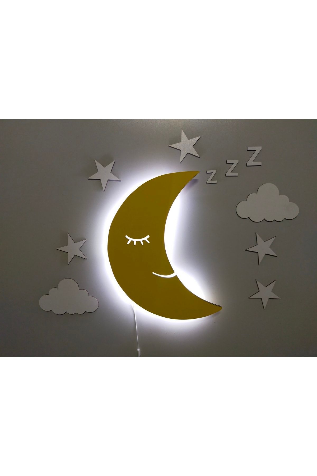 fabrikahşap Dekoratif Uykucu Aydede Gece Lambası Ledli Aydınlatma Aplik