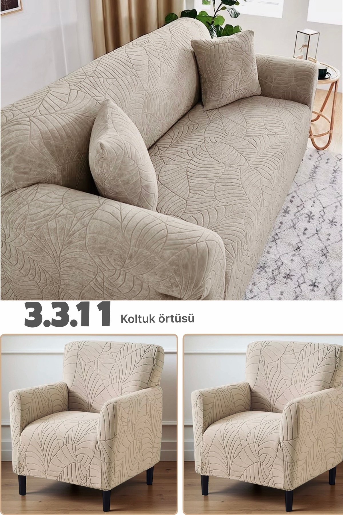 Faiend Jakarlı 3 3 1 1 gri Lastikli Kanepe Örtüsü | Lastikli Koltuk Örtüsü | koltuk kılıfı Takımı Özellikleri