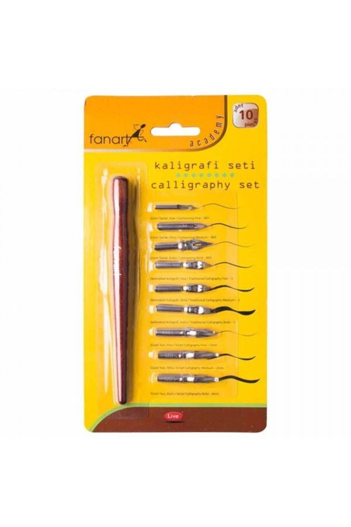 Fanart : Academy Kaligrafi Seti : 10 Uçlu 9 Adet Farklı Yazım Için Başlık Ve 1 Adet Ahşap Sap