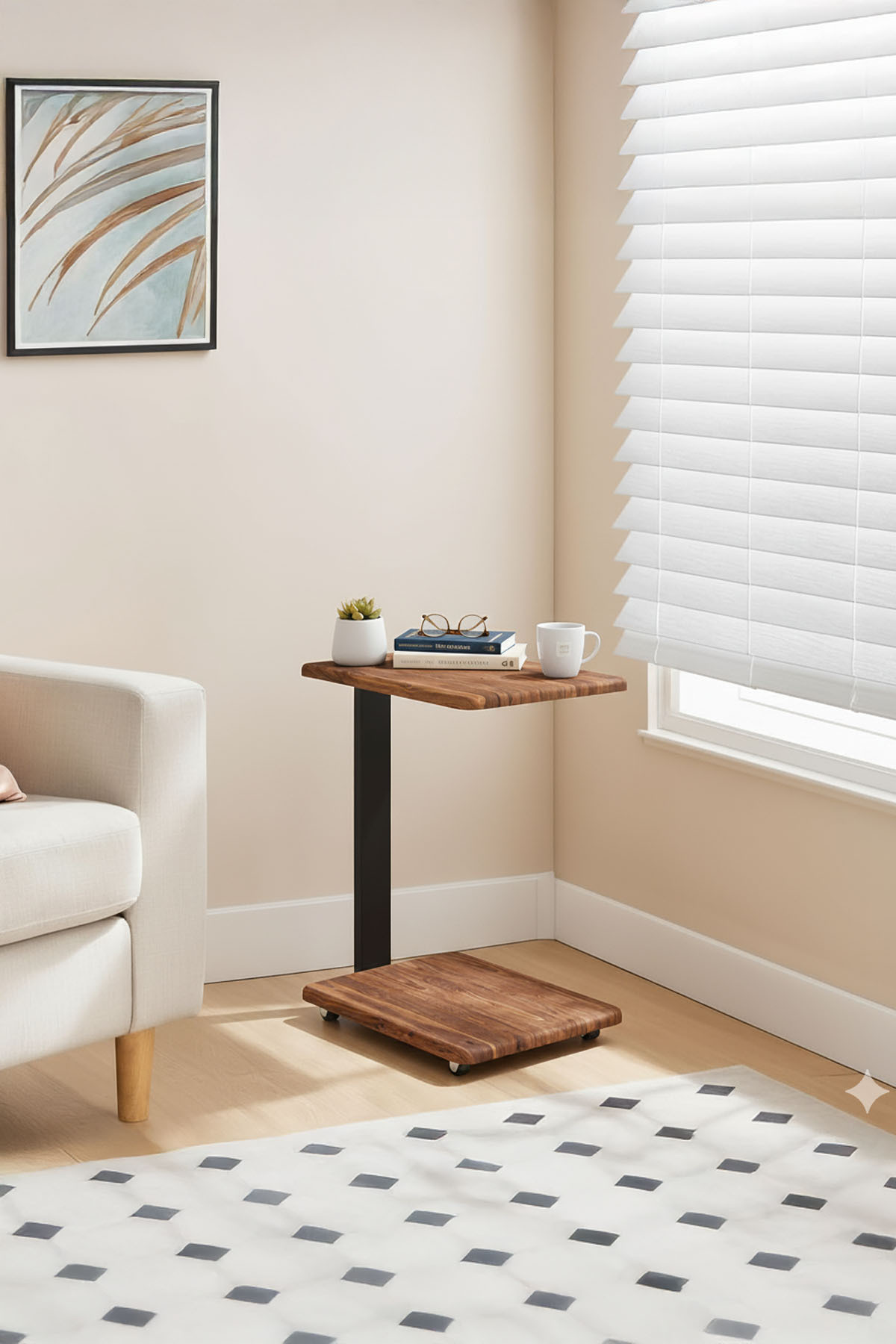 FANO Tekerlekli Yan Sehpa – Assem C Sehpa, Ceviz Desenli MDF - Kahve ve Çalışma Sunum Sehpası Özellikleri