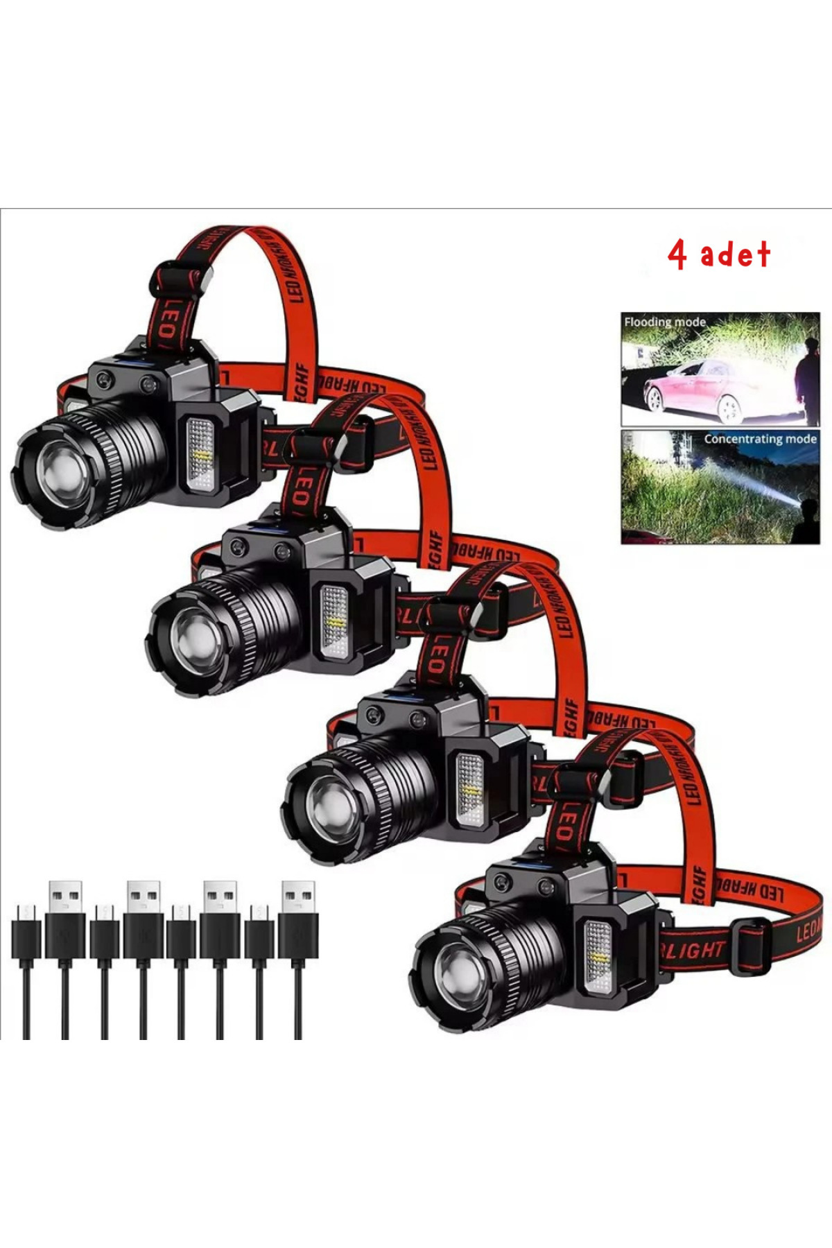 farissu Zoom Sensörlü LED Kafa Feneri | USB-C Şarjlı, Yakınlaştırmalı, Dijital Göstergeli 4 adet