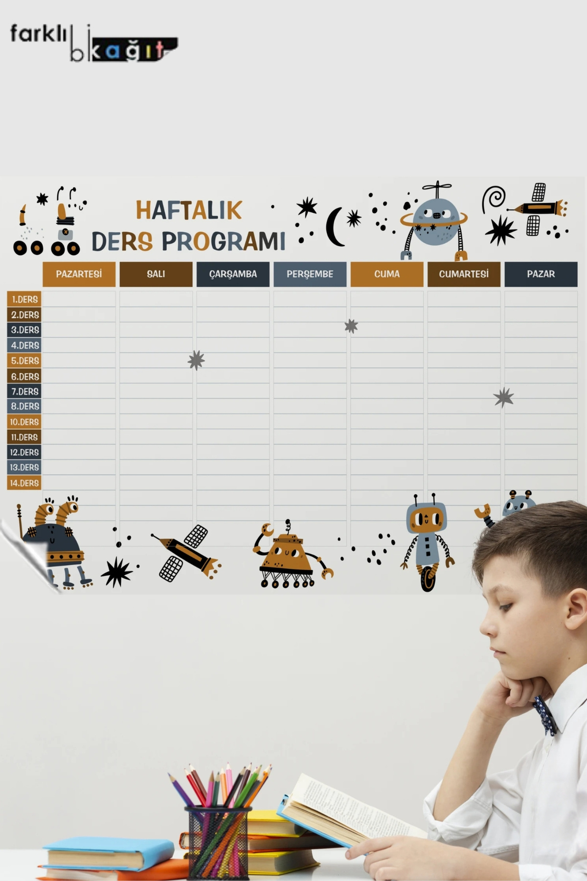 Farklı Bi Kağıt Model- 1 Kendi Kendine Tutunma Özellikli, Mıknatıslı Statik Akıllı Kağıt Haftalık Ders Programı
