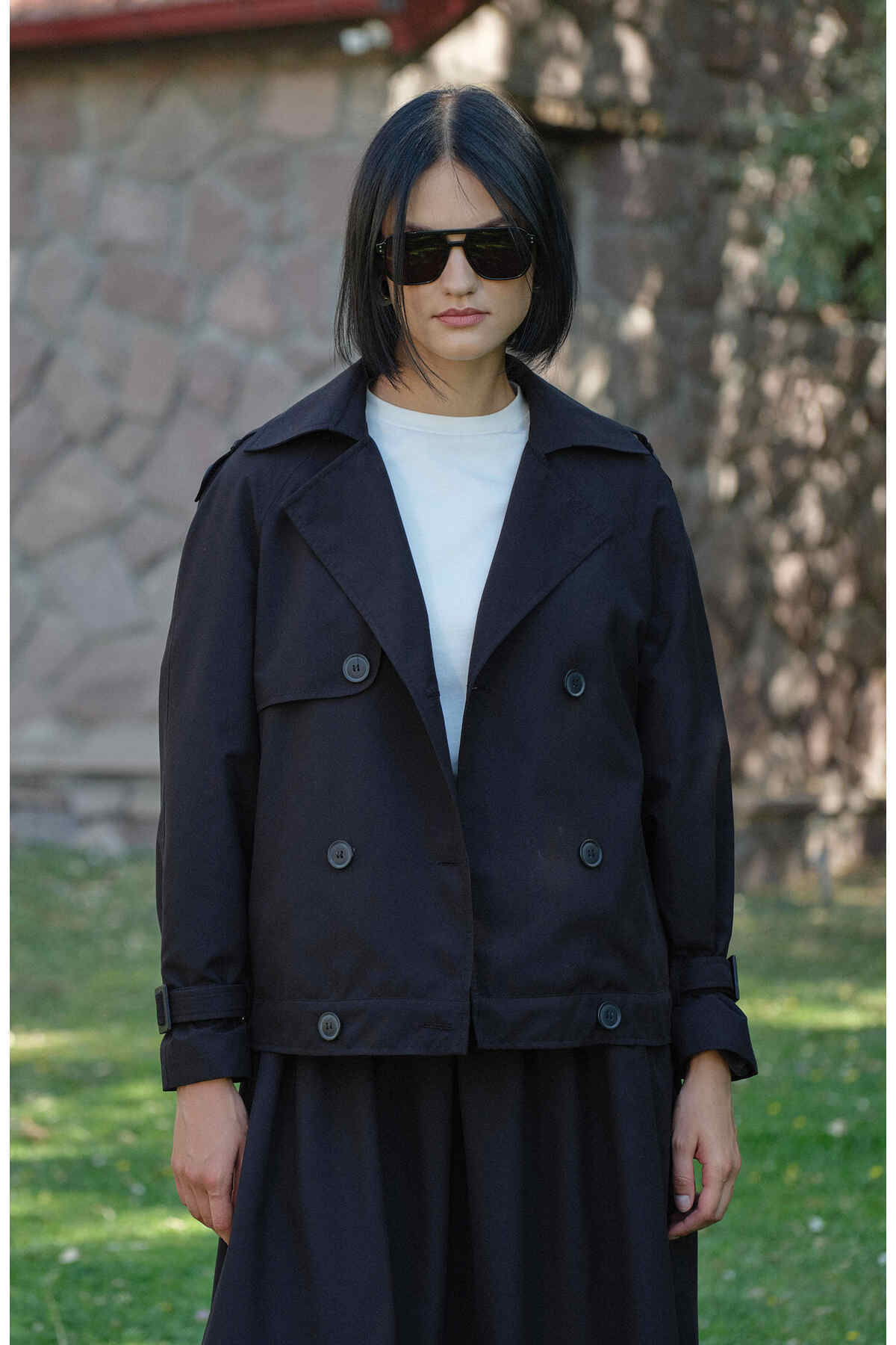 Fatma Atasoy Kol Apoletli Siyah Midi Trenç Ceket Özellikleri