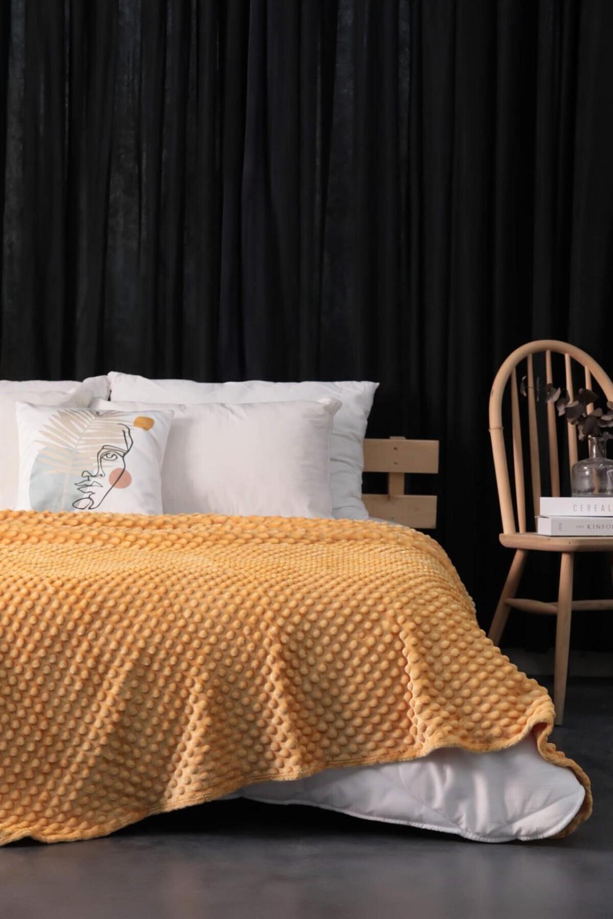 FAVORA Mink Tomurcuk Çift Kişilik Battaniye - Sarı