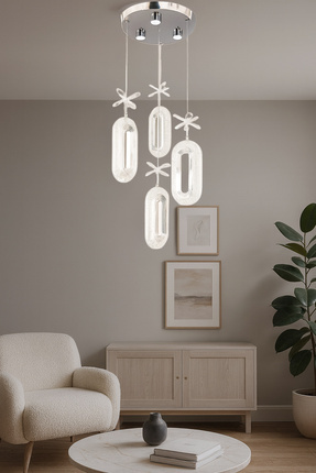 Fer Avize Arel 4lü Modern Led Avize Krom Renk Kristal Görünüm Beyaz Işık Enerji Tasarruflu Salon Yemek Odası