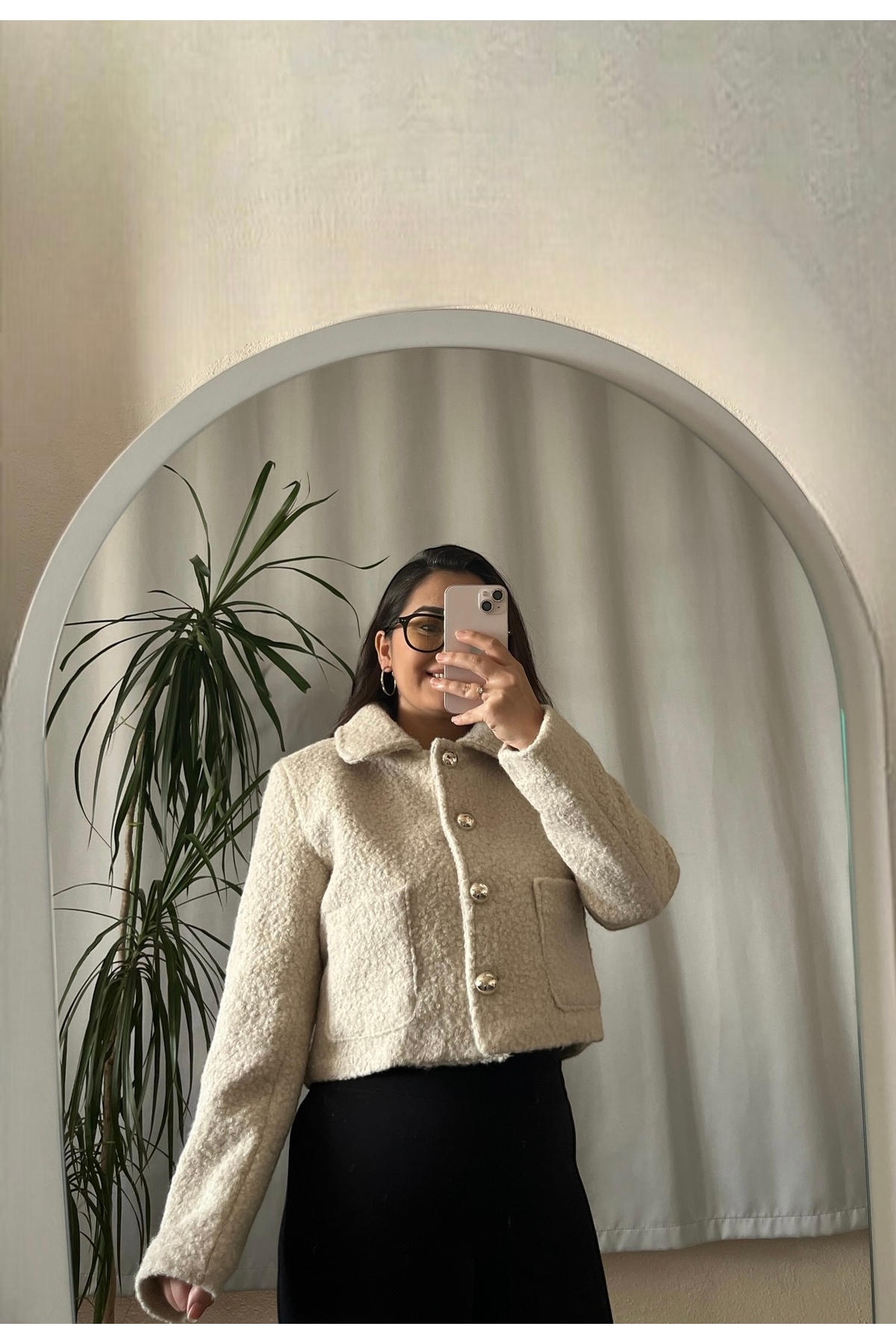 FİHAHA TEKSTİL Düğmeli Krem Ceket
