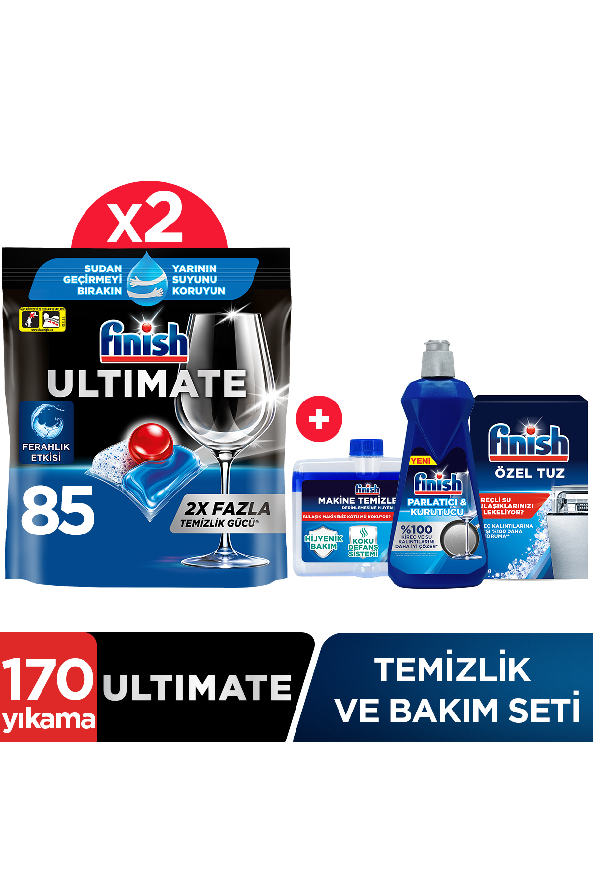Finish Ultimate 170 Kapsül Bulaşık Makinesi Deterjanı (85 x 2) + Temizlik & Bakım Seti
