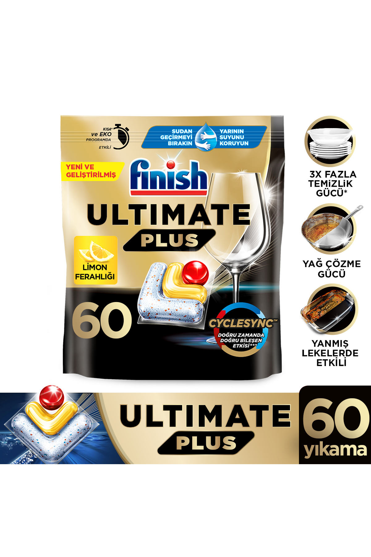 Finish Ultimate Plus Hepsi Bir Arada Bulaşık Makinesi Deterjanı Kapsül Tablet Limon 60 Adet