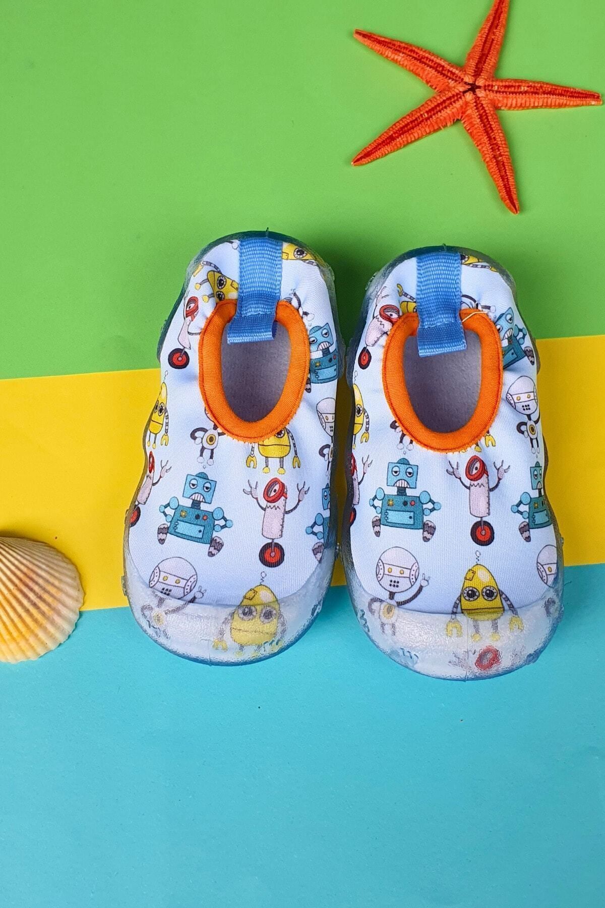First Step Robot Desenli Mavi Erkek Çocuk Kaydırmaz Tabanlı Deniz Ayakkabısı-F-7025 Özellikleri