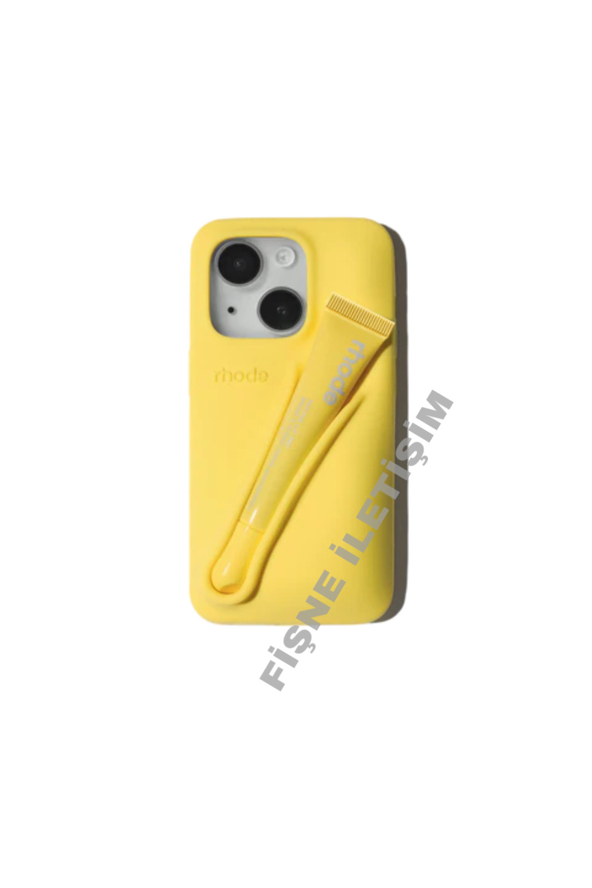 FİŞNEİLETİŞİM İPHONE 13/14 UYUMLU RUJLU KILIF (SARI KILIF/SARI GLOSS)