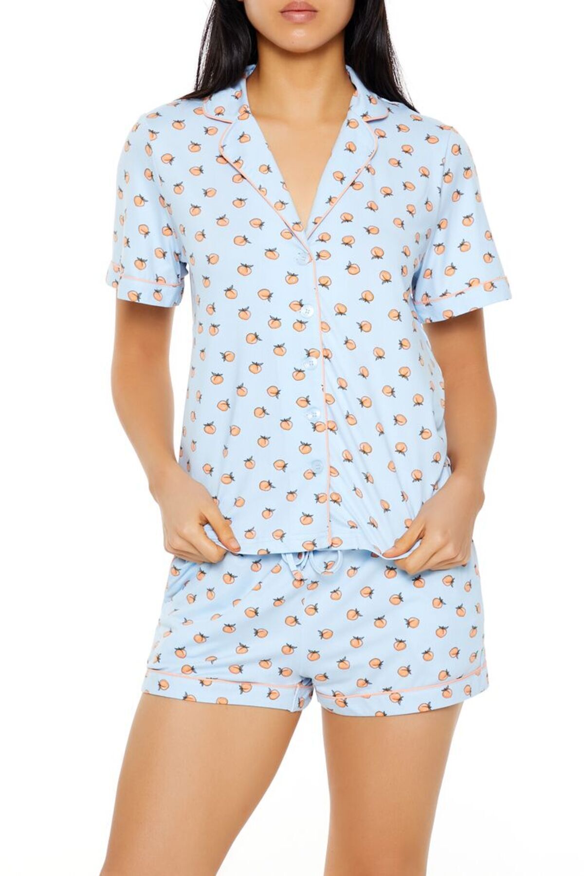 Forever 21 Şeftali Desenli Gömlek ve Şort Pijama Takımı