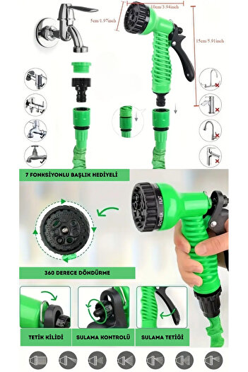 FREED TOOLS 7 Fonksiyonlu Uzayan Hortum l Araç yıkama l Bahçe Sulama l İlaçlama l Yıkama Hortumu 15 m