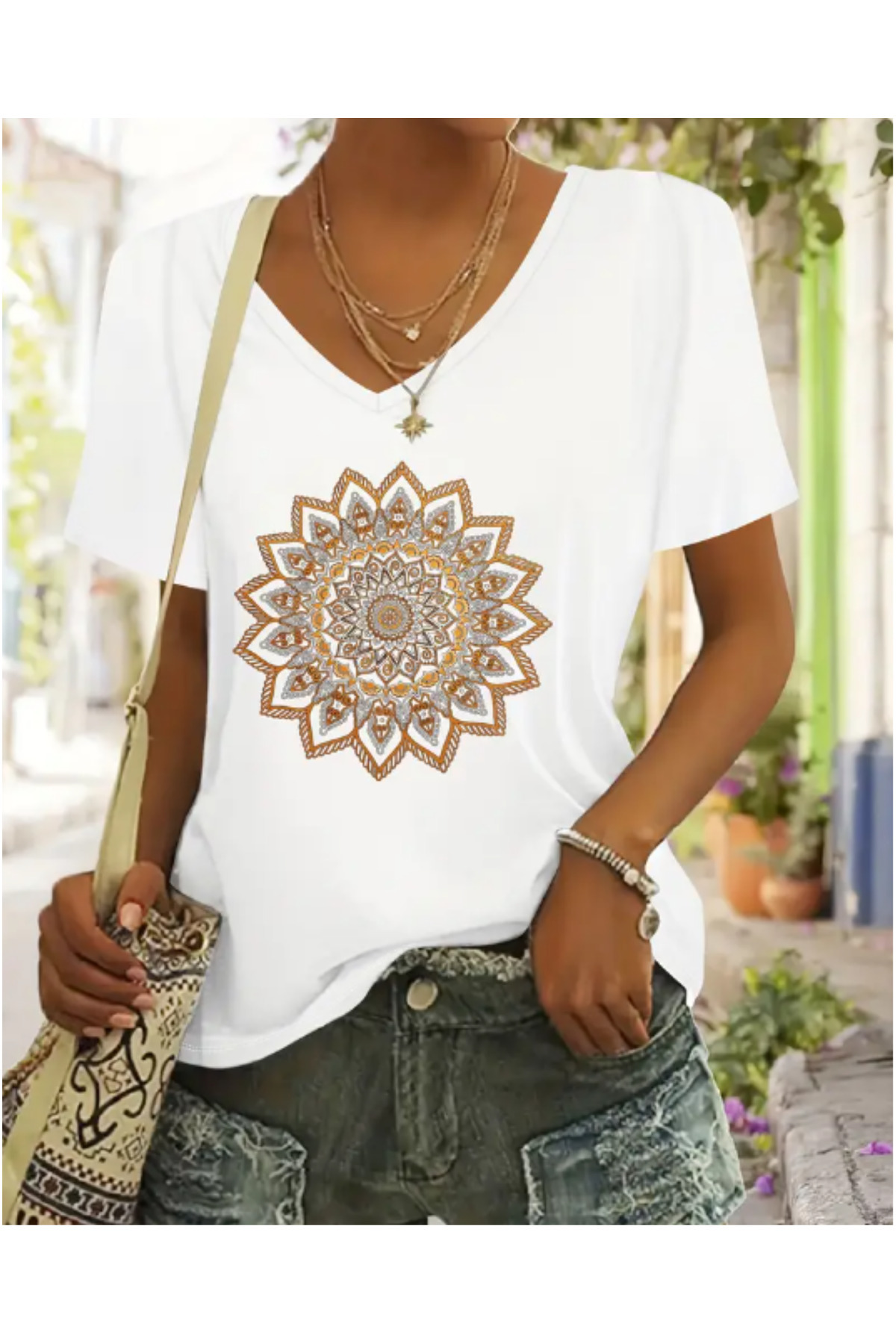 FUFLUNS V YAKA OVERSİZE MANDALA BASKILI TİŞÖRT