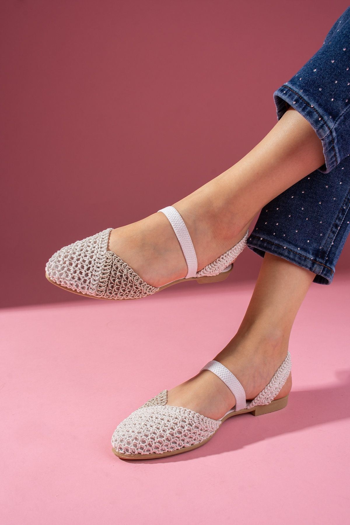 FUGA MODA Finex Bej Vizon Çift Renkli Önü Kapalı Triko Örgü Lastikli Sandalet Özellikleri