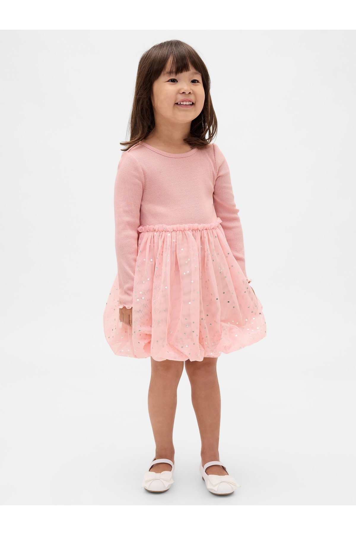 GAP Kız Bebek Pembe Mixed Media Bubble Elbise