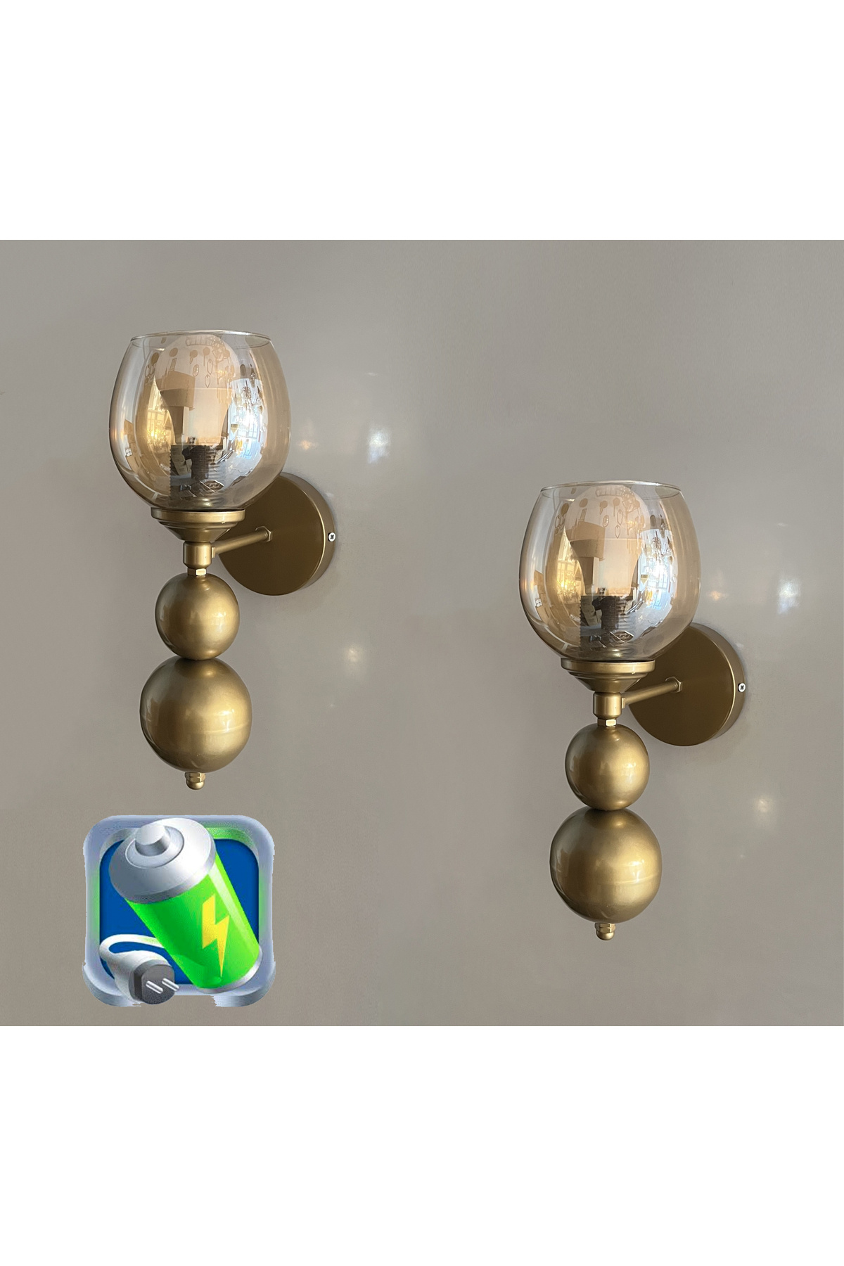 gaziantepavize Şarj Et Kullan Eskitme Tokyo Şarjlı Pilli Aplik Bal Cam Metal Gövde Modern Duvar Aydınlatma -2 Adet