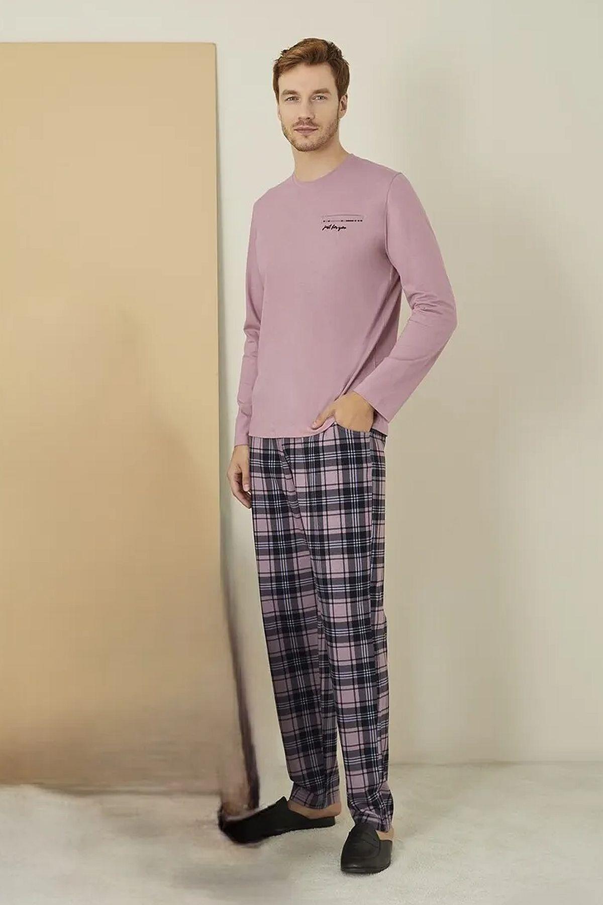 Genel Markalar 1613 Elitepoint Erkek Uzun Kollu Bisiklet Yaka Pijama Takımı-Gülkurusu