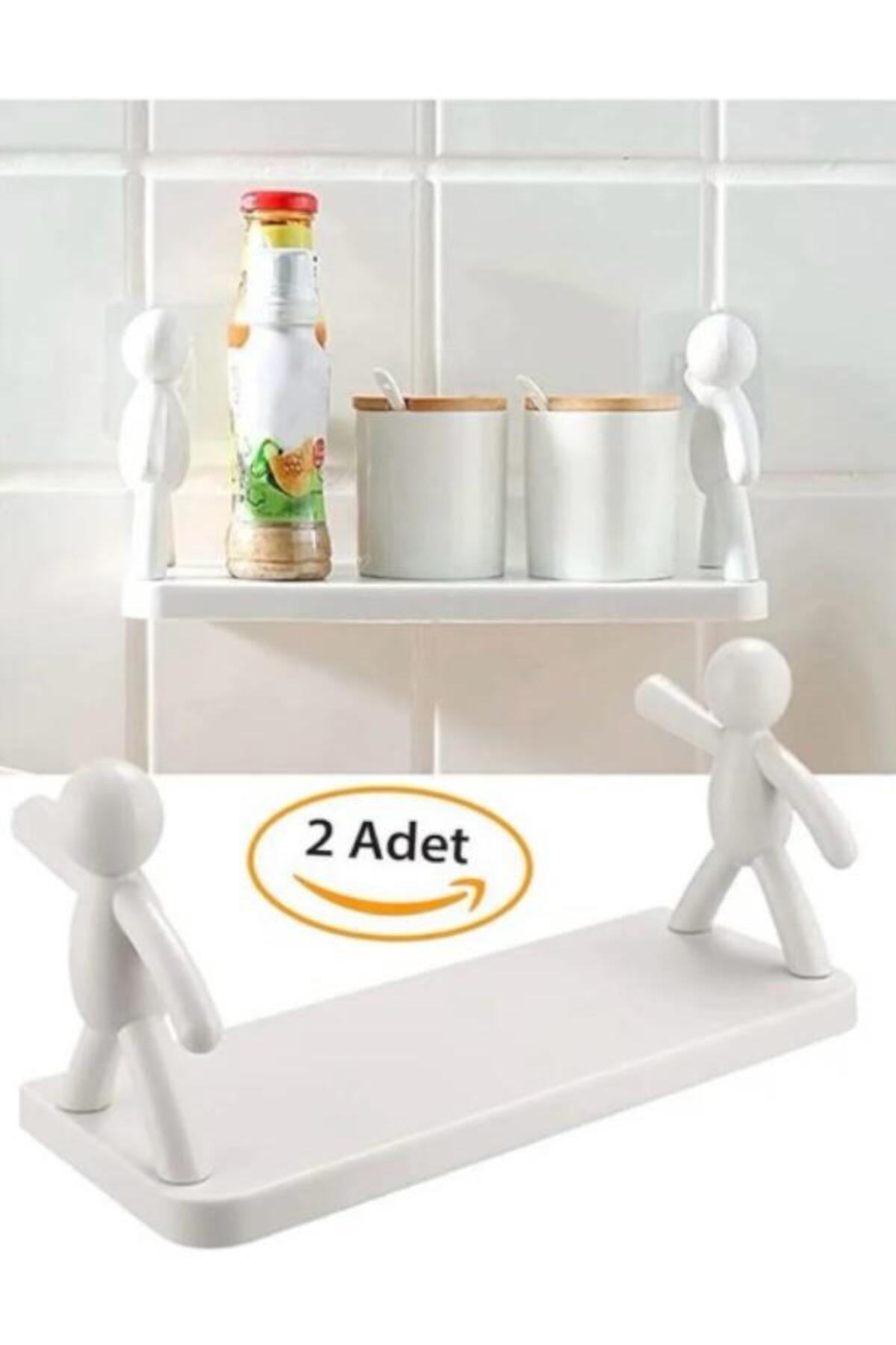 Genel Markalar 2 Adet Sevimli İnsan Motifli Banyo Mutfak Ofis Baharat Rafı Kendinden Yapışkanlı Çöp Adam Rafı