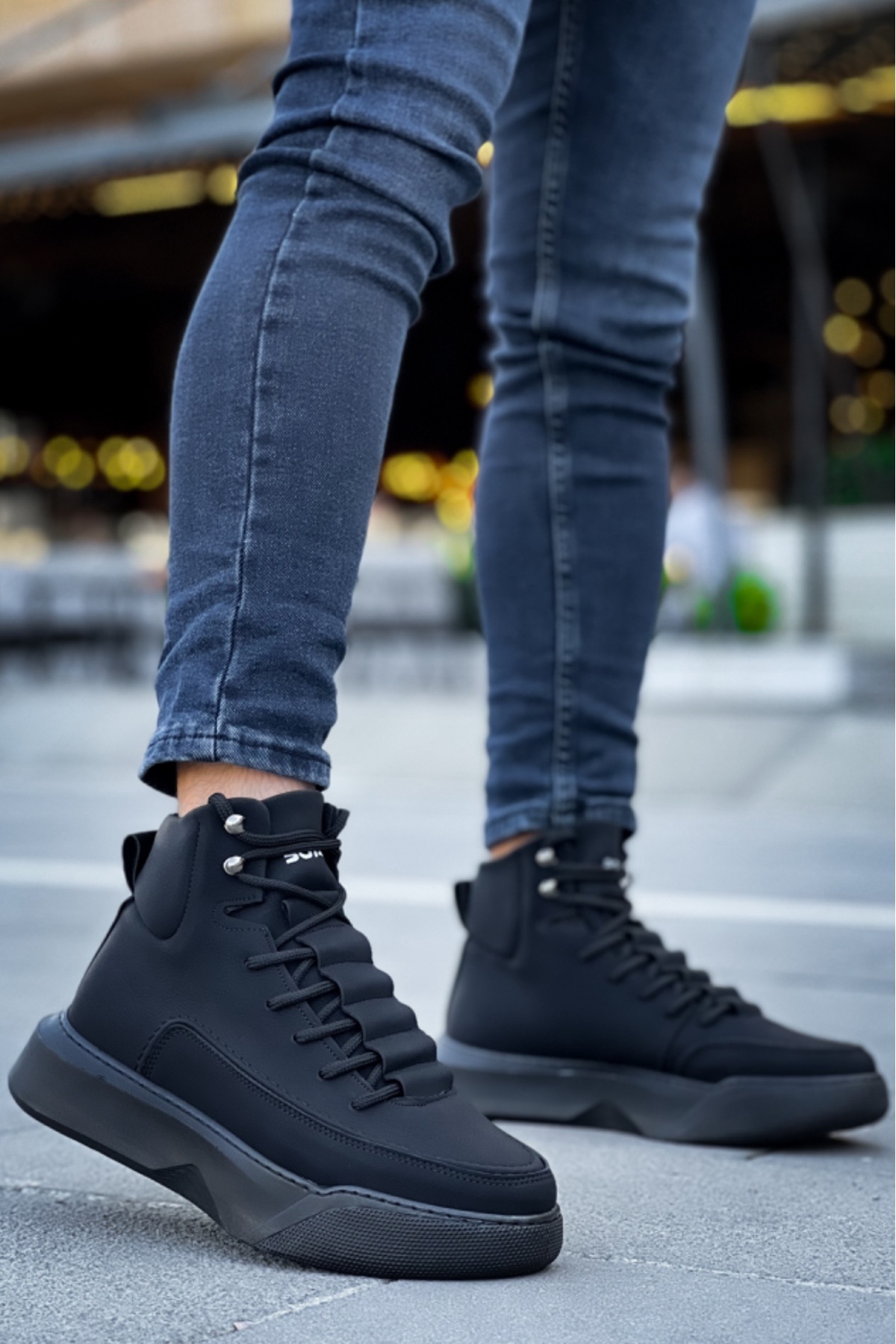 Genel Markalar BA0321 Gizli Bağcıklı Erkek Yüksek Taban Siyah Spor Bot