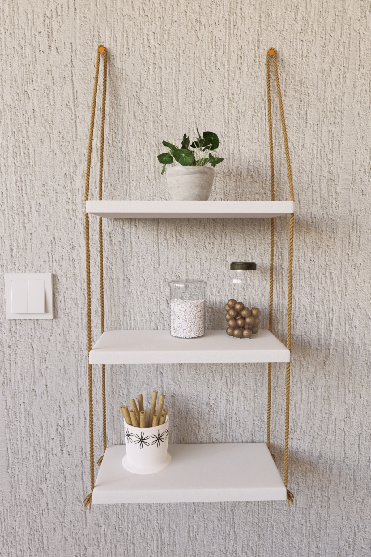 Genel Markalar Hesaplı 3 Katlı Halatlı Duvar Rafı