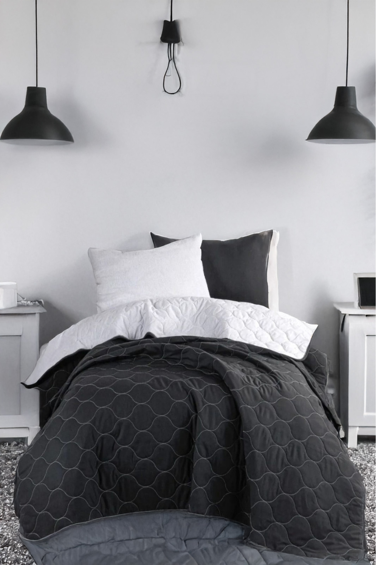 Genel Markalar Kapitone Yatak Örtüsü Seti Tek Kişilik Solid Siyah-Gri Özellikleri