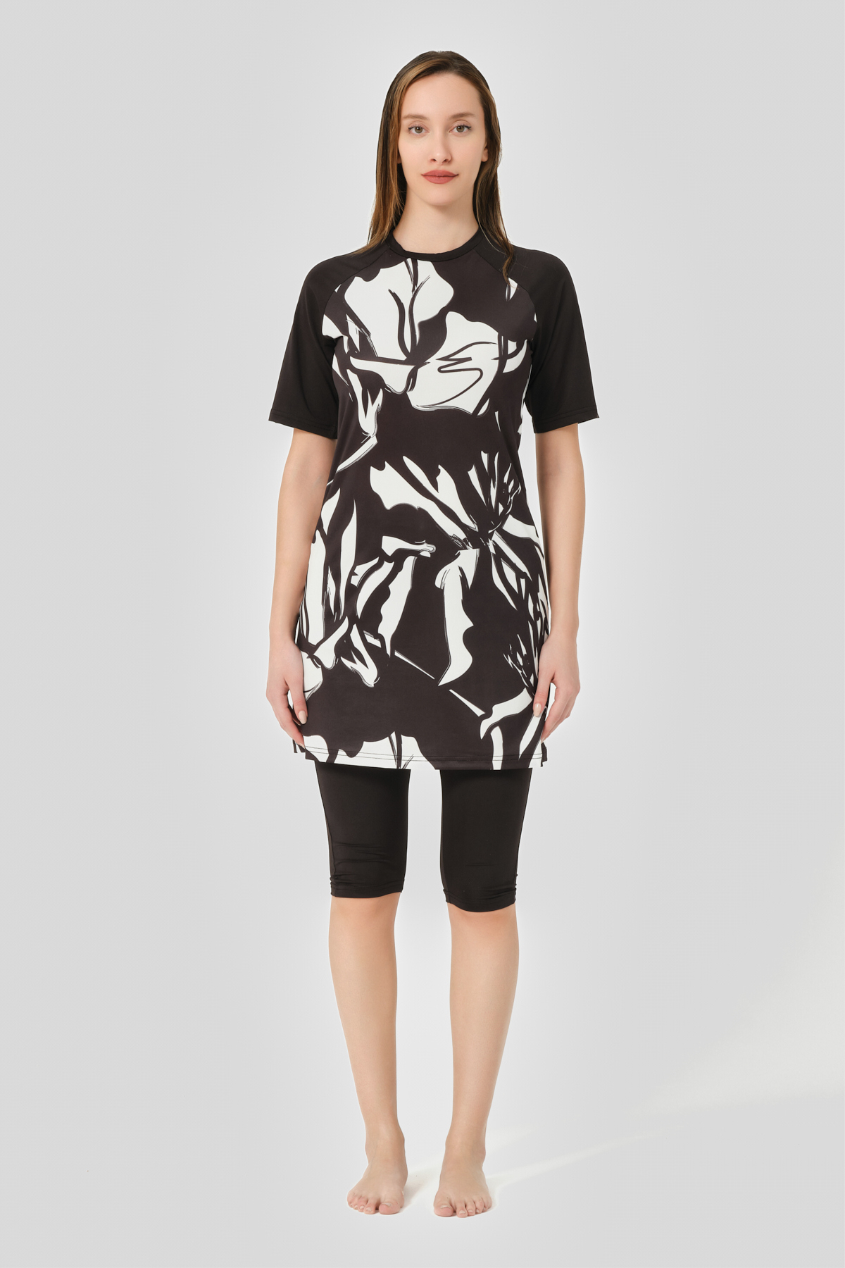 Genel Markalar Patchwork Reglan Yarım Kol Yarı Kapalı Mayo