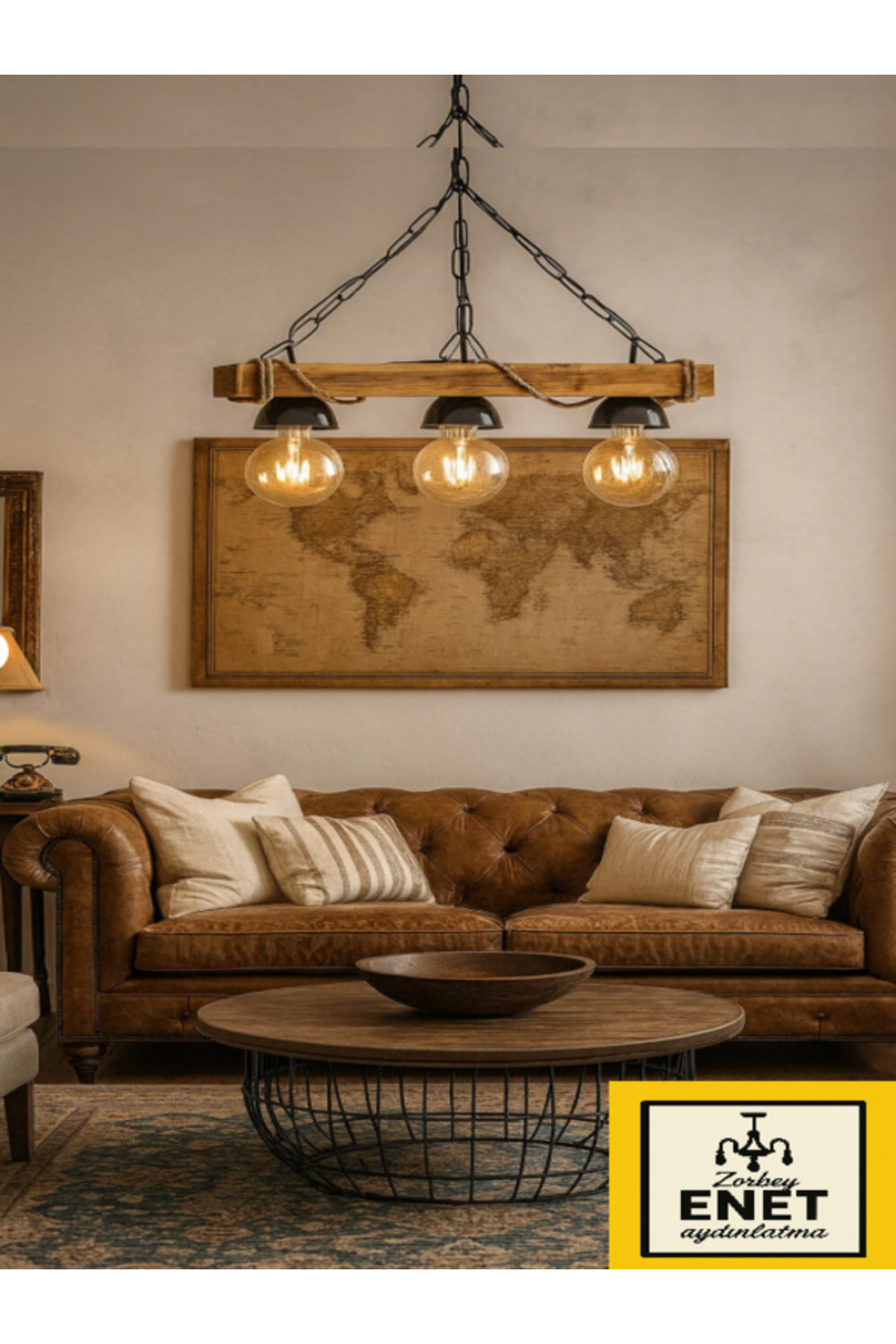 Genel Markalar Rustik Ahşap Avize 3 Lü Halatlı Avize Özellikleri
