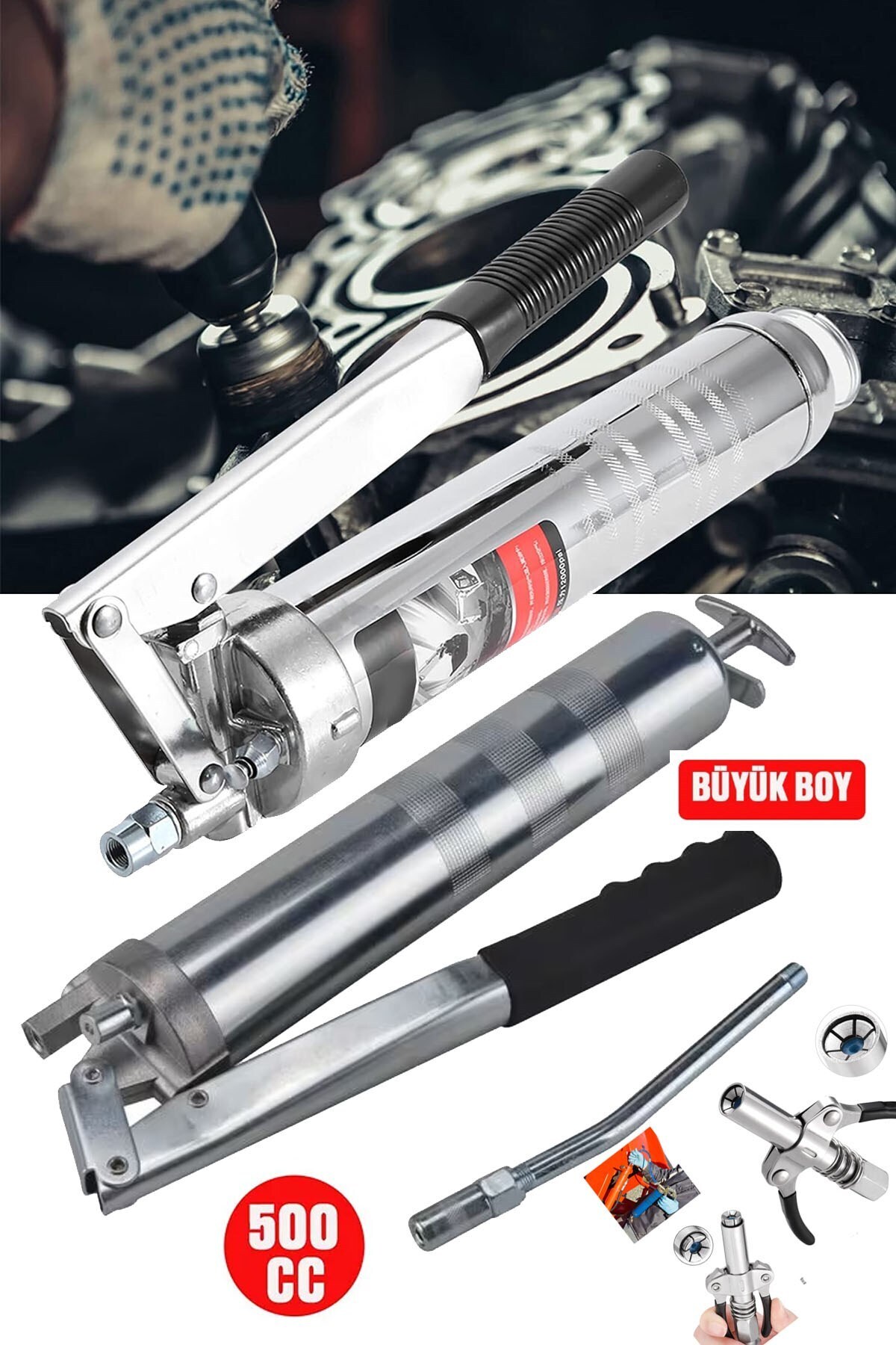 Genel Markalar Yüksek Basınçlı Gres Yağ Pompası Endüstriyel Boy 500cc Gres Tabancası + Çift Mandallı Gres Pompa Ucu