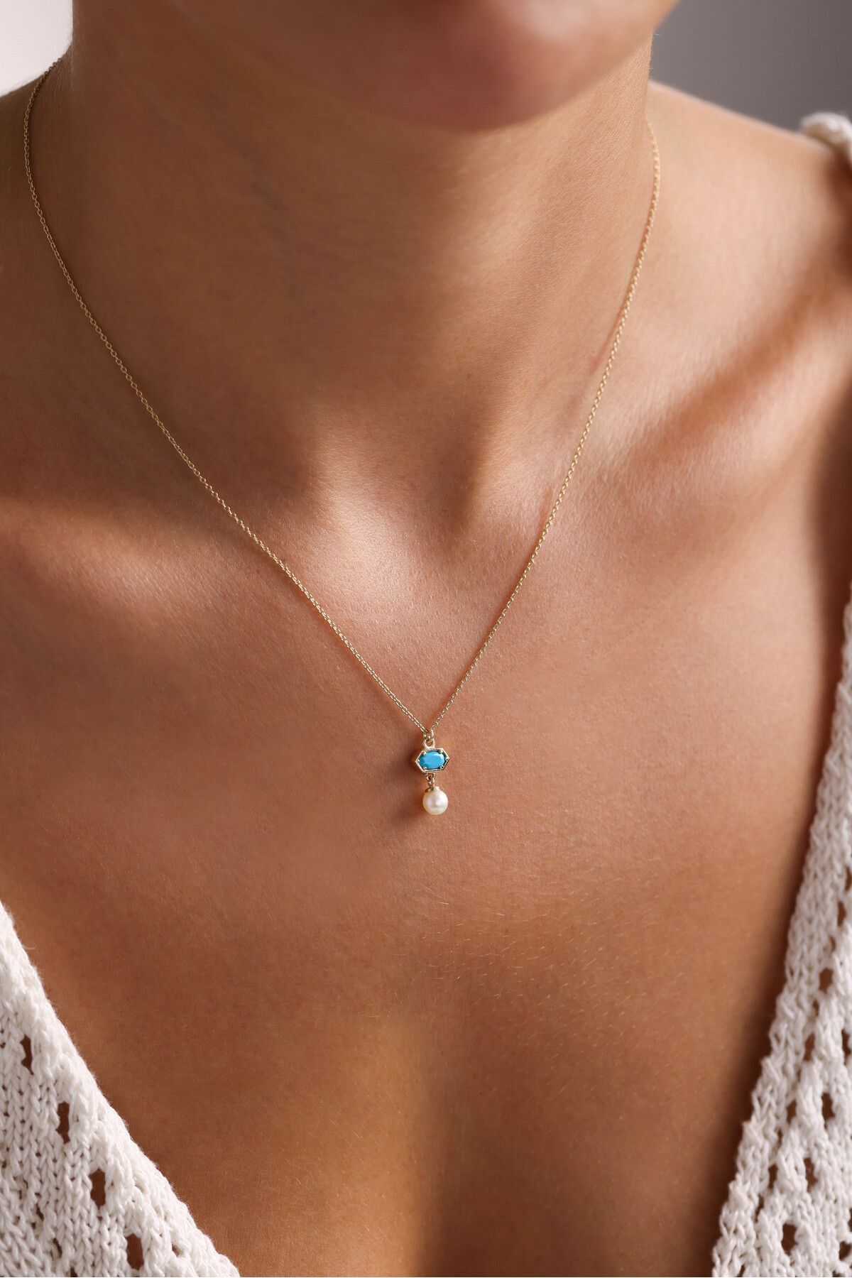 Gianfranco 14 Ayar Altın Inci Detaylı Mavi Petek Nuo Kolye Özellikleri