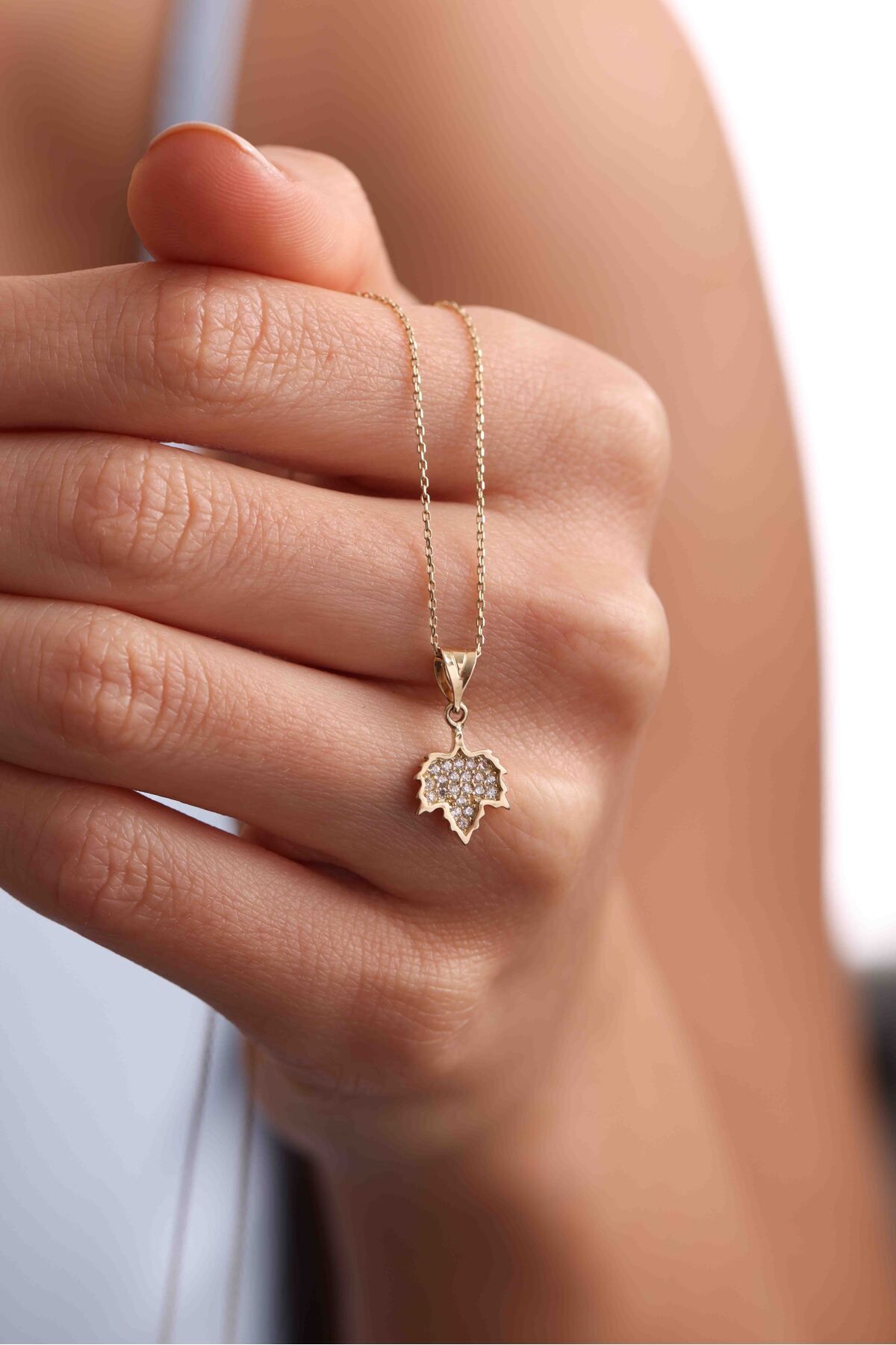 Gianfranco 14 Ayar Altın Taşlı Çınar Yaprağı Kolye Özellikleri